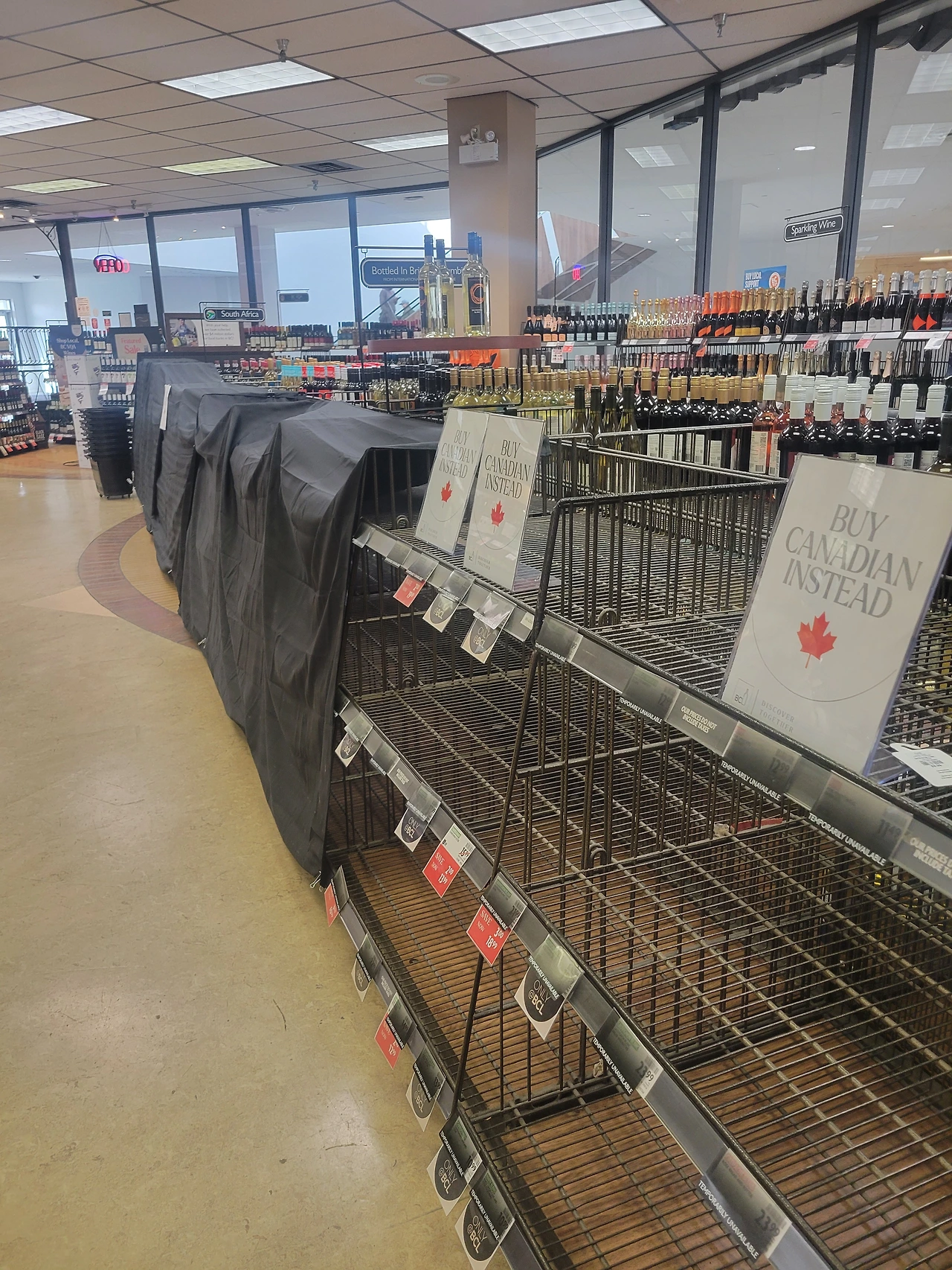 그 문구 앞에서 한참을 서 있었다. 번역하자면 "대신 캐나다산을 사세요"라는 의미인데, 여기서 "대신"이라는 말이 주는 묘한 감정이 느껴졌다. 굳이 '미국산 술을 사지 말라'고 쓰진 않았지만, 누구나 그 속뜻을 알아챌 수 있었다.