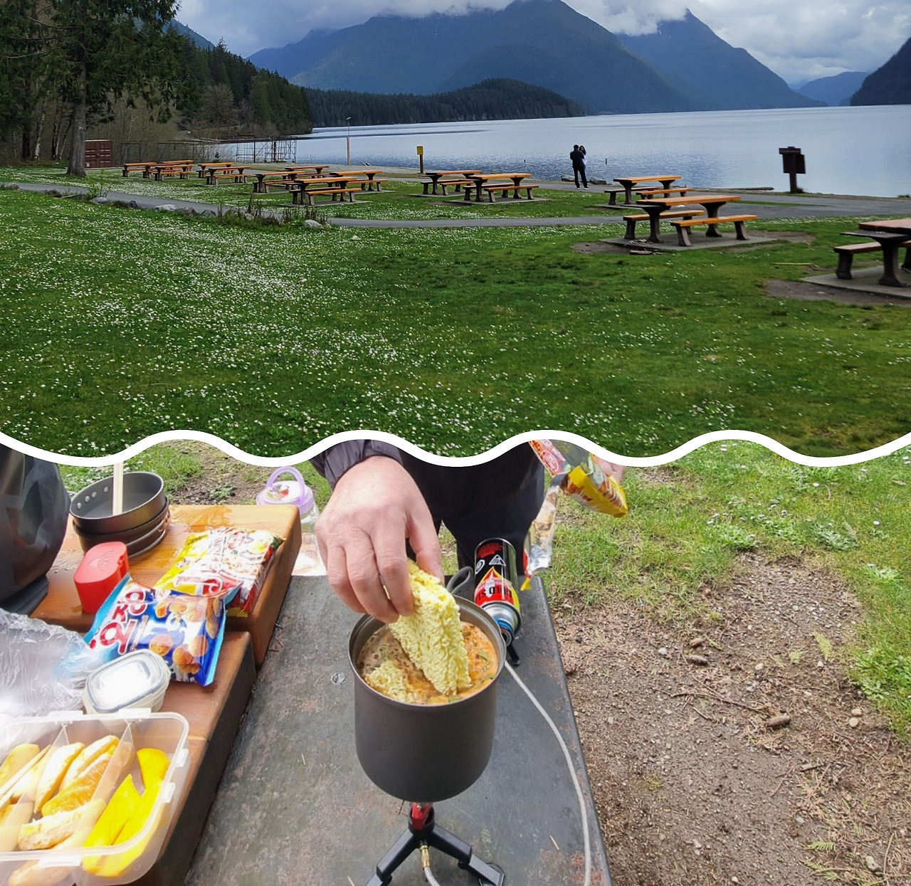 바람이 불어오는 강가에 도착하자, 공원에 설치된 테이블에 자리를 잡고 따뜻한 라면으로 아침을 대신했다. 컵에 내린 맥심 커피도 오늘도 빠지지 않았다. 누구는 “왜 또 라면이야?” 하고 웃을지도 모르겠지만, 야외에서 먹는 국물 음식은 늘 정답이다. 김이 모락모락 피어나는 라면 한 그릇은 바람이 차가울수록 더 든든하고 맛있다.