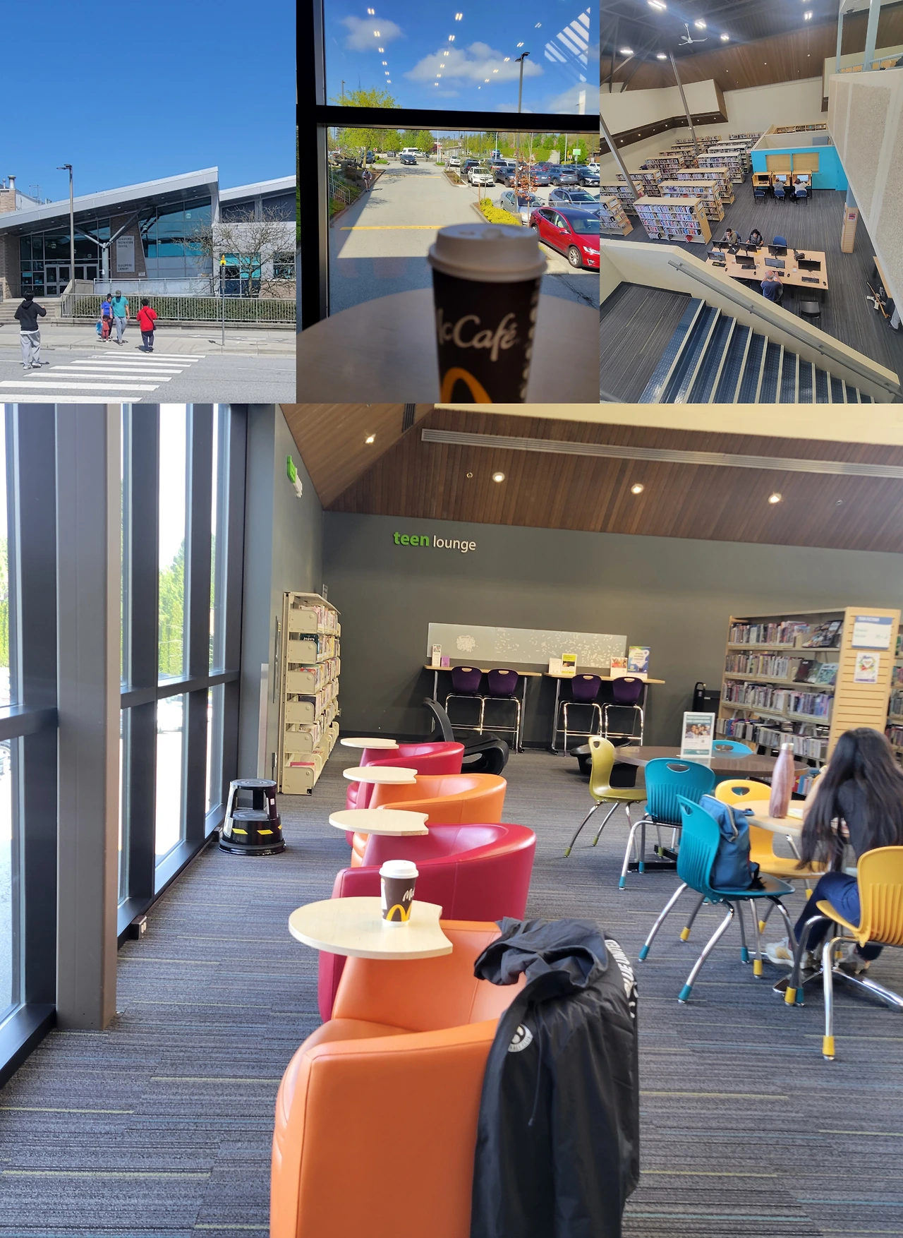 인터넷을 훑어보며 시간을 보내고 있는데, 도서관은 점차 사람들로 붐비기 시작했다. 순간, 문득 내 주위의 공간을 돌아보게 되었다. 벽면에 'Teen Lounge'라는 글씨가 보였다. 순간, 내가 앉은자리가 십 대들 만을 위한 공간이었다는 사실을 알게 되었다. 이 공간에 앉을 수 있는 나이가 아닌 것 같아 약간 어색했지만, 여전히 빈자리가 있었기에 그곳에서 시간을 보내기로 했다. 하지만 마음속으로는 자유롭지 못한 느낌을 떨칠 수 없었다.