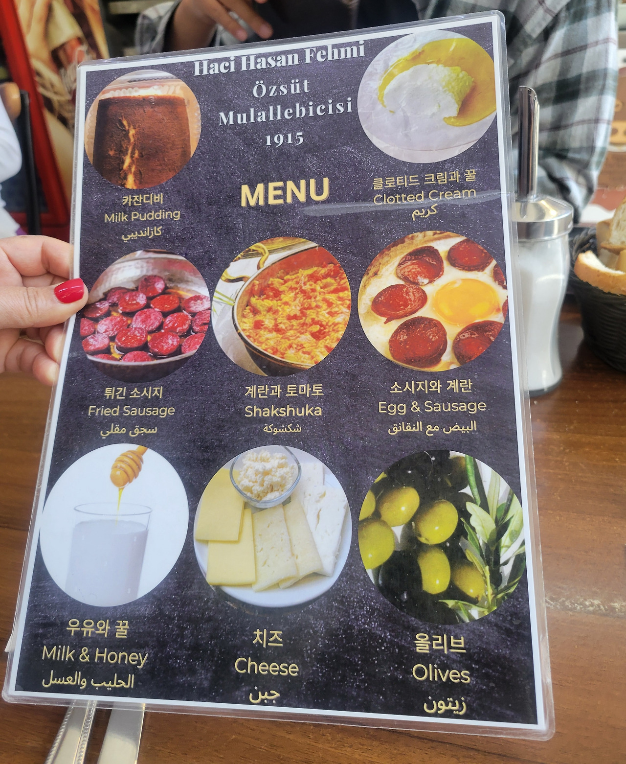 자리에 앉자 직원은 메뉴판을 가져다주었다. 메뉴판에 음식 이름이 한국어로 먼저 표기되어 있었고, 한국어 뒤로 영어와 터키어가 표기되어 있었다. 아들이 고른 메뉴는 ‘클로티드 크림과 꿀(Clotted Cream)’이었다. 달콤한 맛이라면 아빠가 분명 좋아할 거라는 아들의 자신감이 느껴졌다. 메뉴판이 나라별로 따로 제작된 것 같다는 생각도 들었지만, 이유나 방법은 어떠하든지 이런 세심한 배려가 감사하고도 정성스럽게 다가왔다.