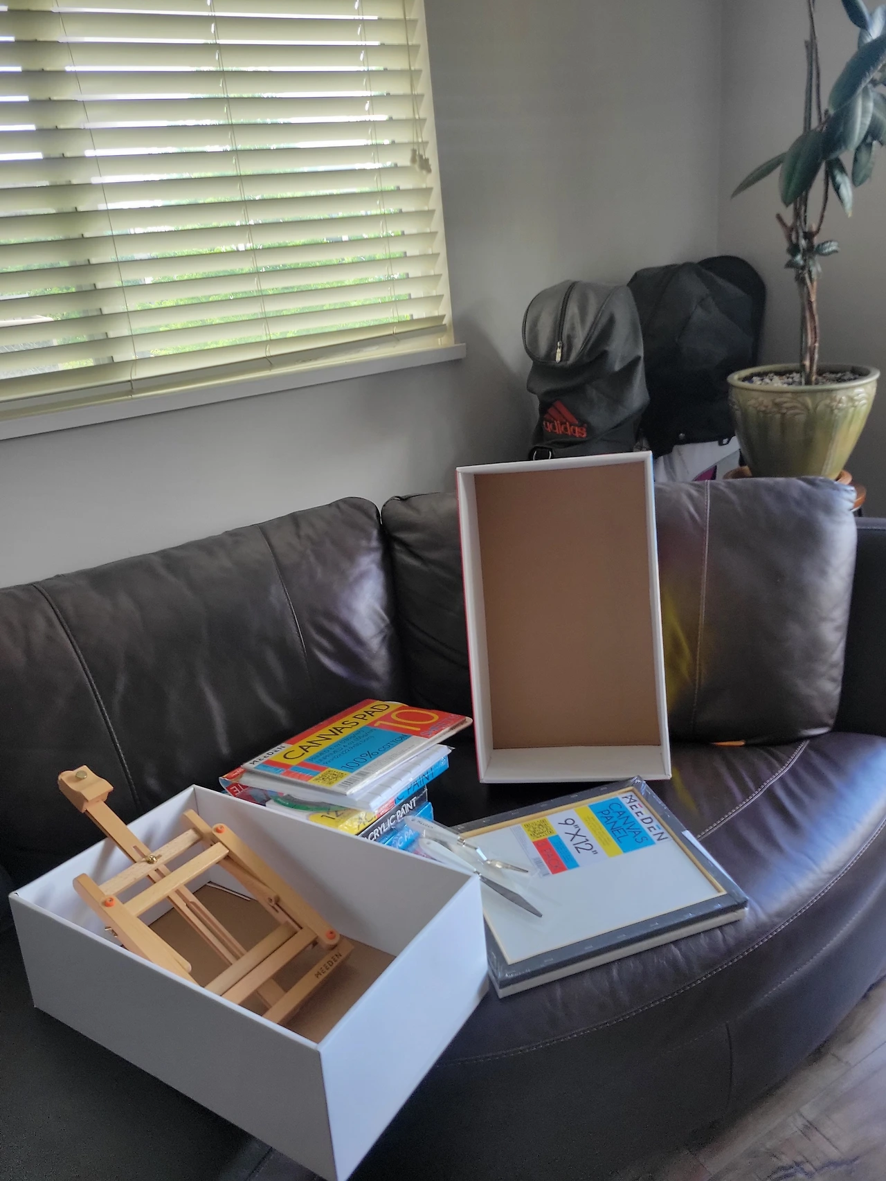 상자에 먼저 눈이 갔다. 과일 상자도 아니고, 도대체 무엇이 들어 있을까 궁금했다. 아내에게 상자를 내밀며 선물이라 한다. 아내는 조심스럽게 열어보았다. 캔버스와 나무 이젤, 물감, 팔레트, 팔레트 나이프, 페인팅 나이프가 한가득 담겨 있었다. 그림을 그릴 수 있는 도구가 모두 들어 있는 종합세트였다.