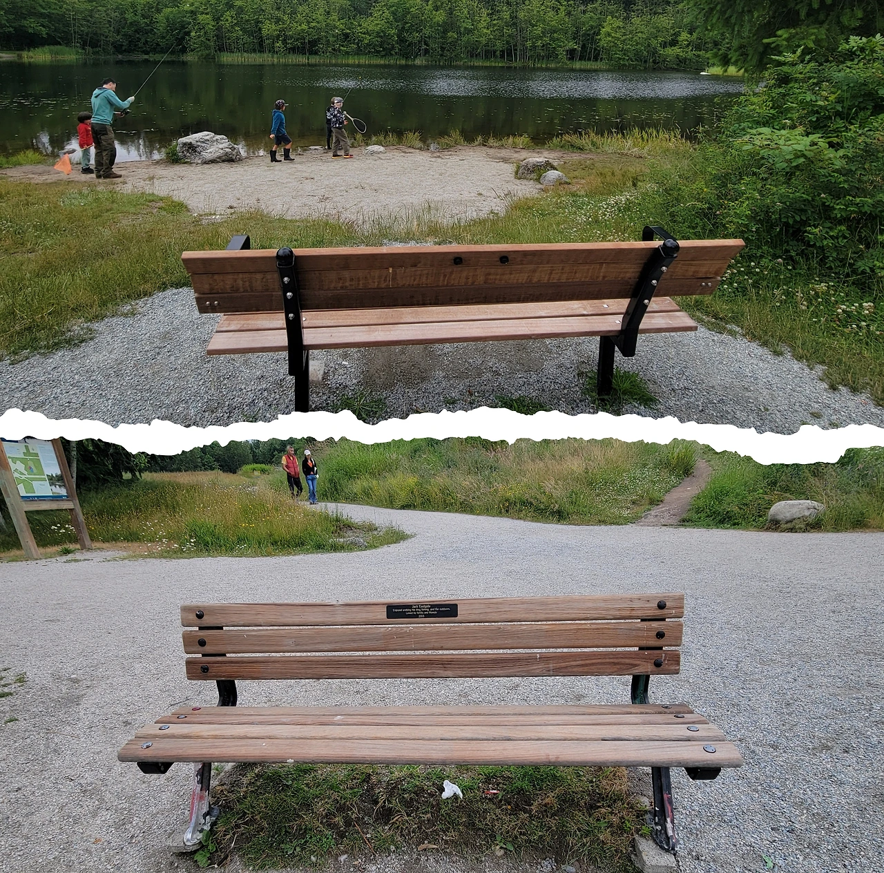 숲길을 따라 걷다 보면 작은 호수가 나오고, 그 주변엔 쉬어갈 수 있는 벤치들이 군데군데 놓여 있다.그중 하나의 벤치 중앙에는 ‘JOAN R. LOUGHMAN’이라는 이름이 동판에 새겨져 있었다.
