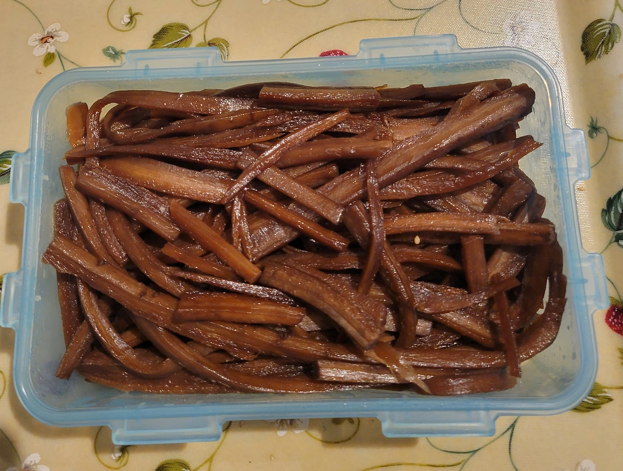 조려낸 우엉의 양은 수십 인분 김밥을 싸도 될 만큼 넉넉했다. 이 우엉을 넣어 이제 한동안은 제대로 된 김밥을 먹을 수 있을 것 같다. 물론 캐나다 한인마트에서는 이미 조려진 우엉을 소포장으로 팔지만 양이 적고 가격도 제법 나간다. 몇 줄 싸고 나면 금세 바닥이 난다. 그래서 우엉대가 마트에 입하되기만을 기다려왔다. 오늘은 2달러 조금 넘는 가격에 길쭉한 우엉대 4개를 구입할 수 있었고 그 기다림은 더욱 흐뭇한 만족으로 돌아왔다.