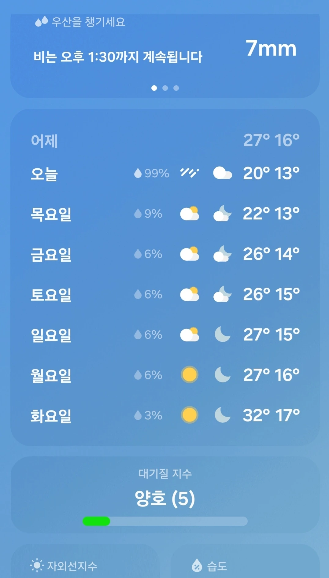 그런데 오늘은 완전히 다른 풍경이 펼쳐졌다. 오전부터 비가 내렸고, 기온은 16도까지 떨어졌다. 봄이나 초겨울에 가까운 온도다. 거리엔 두터운 재킷이나 후드티, 모자 달린 점퍼를 입은 사람들이 제법 눈에 많이 들어온다. 여름이라 해도 체감 온도에 따라 즉각 옷을 바꾸는 이곳 사람들의 습관은 어느덧 나에게도 자연스러워졌다.