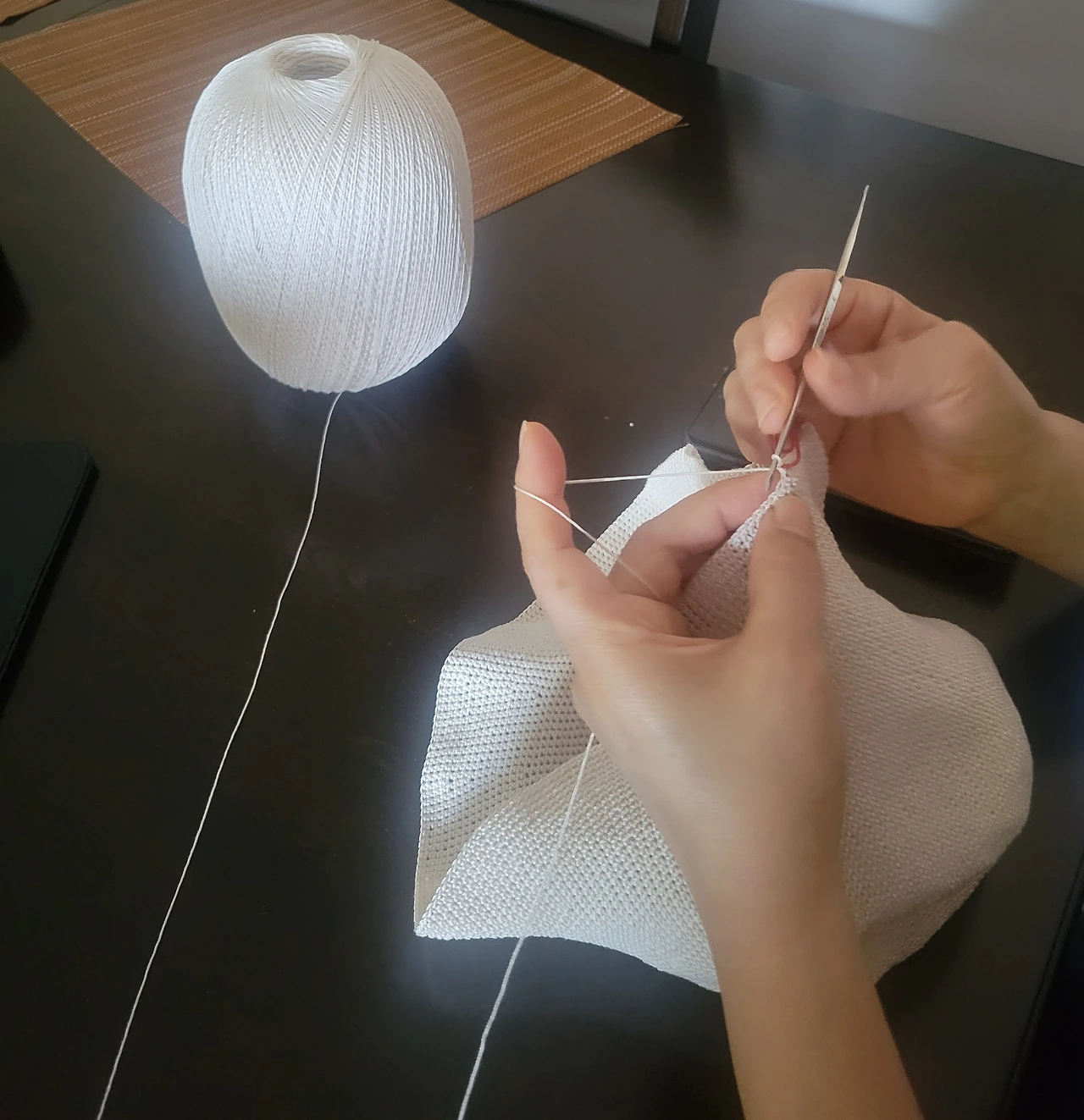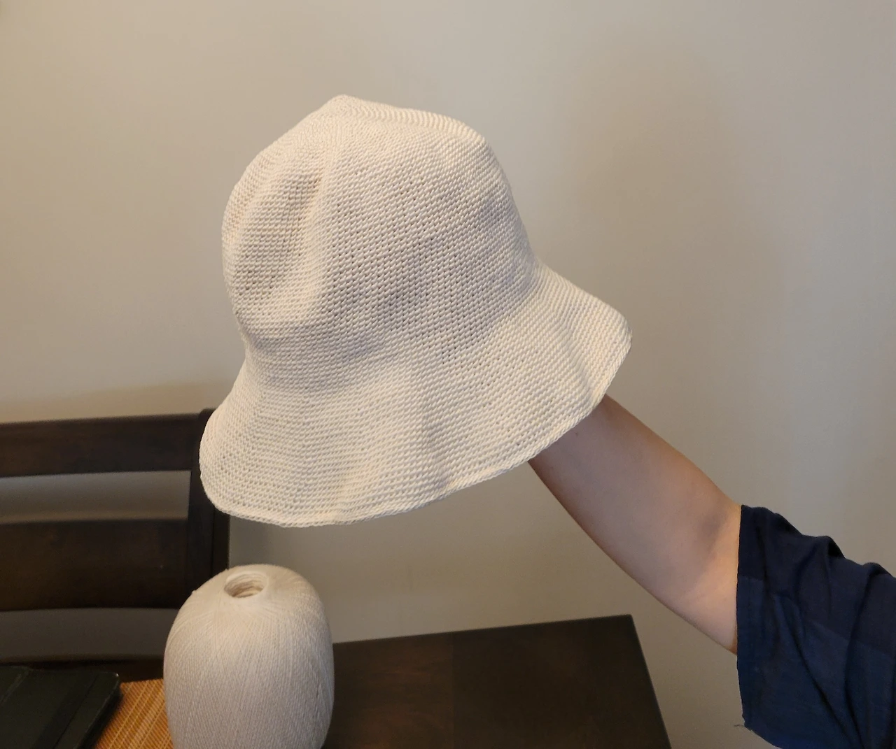 아내는 머리 둘레를 대충 짐작해 넉넉하게 떴다고 생각했지만, 막상 써보니 마음에 걸렸던 모양이다. 실을 다시 푸는 아내의 손길에서 정성과 진심이 조용히 전해졌다.