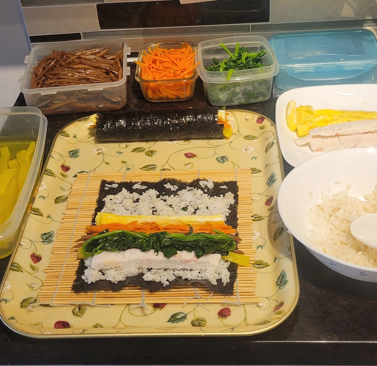 며칠 전 아내와 장을 보며 김밥 재료를 사 두었던 게 떠올라, 나는 주저하지 않고 김밥을 싸기 시작했다. 사실 아들 여행길에 줄 김밥을 염두에 둔 것은 아니었다. 우리 부부가 평상시에 먹으려고 사두었던 재료였다.