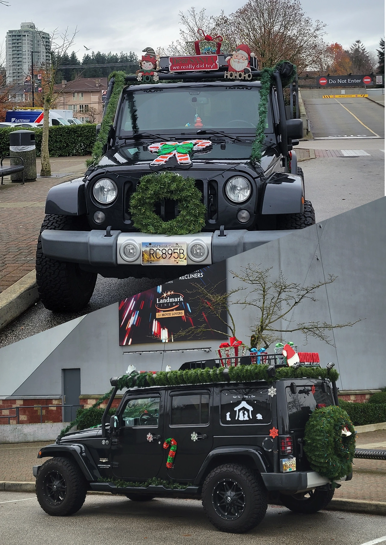 너무 신기한 풍경이라 앞, 뒤, 옆을 분주히 돌아다니며 핸드폰 카메라로 여러 각도를 담아냈다. 밴쿠버에서 오래 살았지만, 이런 크리스마스 차량 장식은 처음 보는 광경이었다.