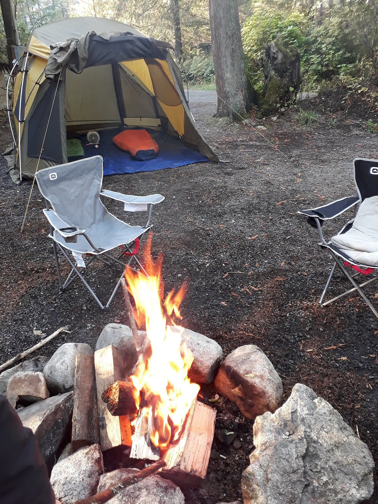 Klahane Camping Round에 텐트를 설치하고미리부터 장작 불을 피웠다.
