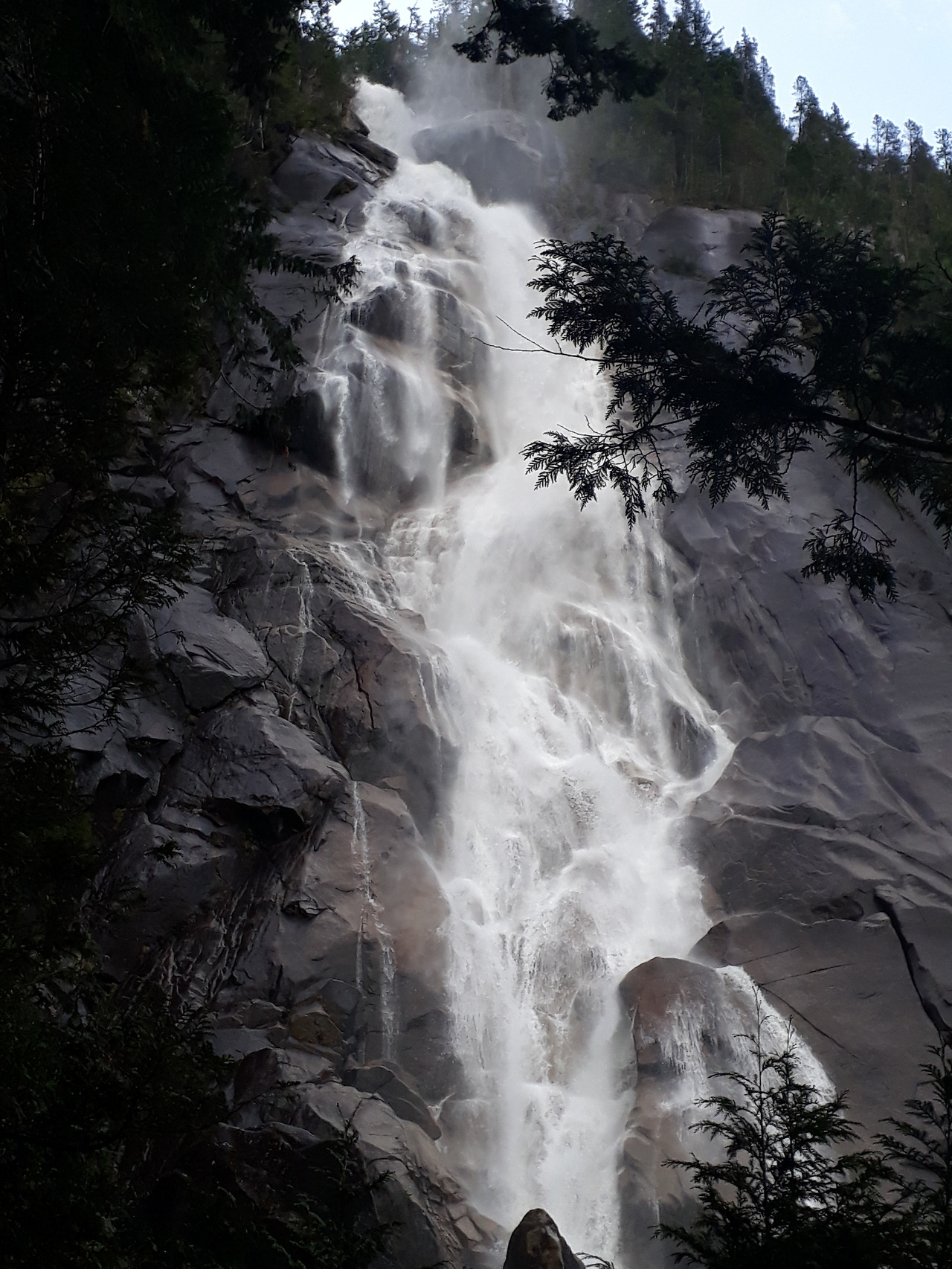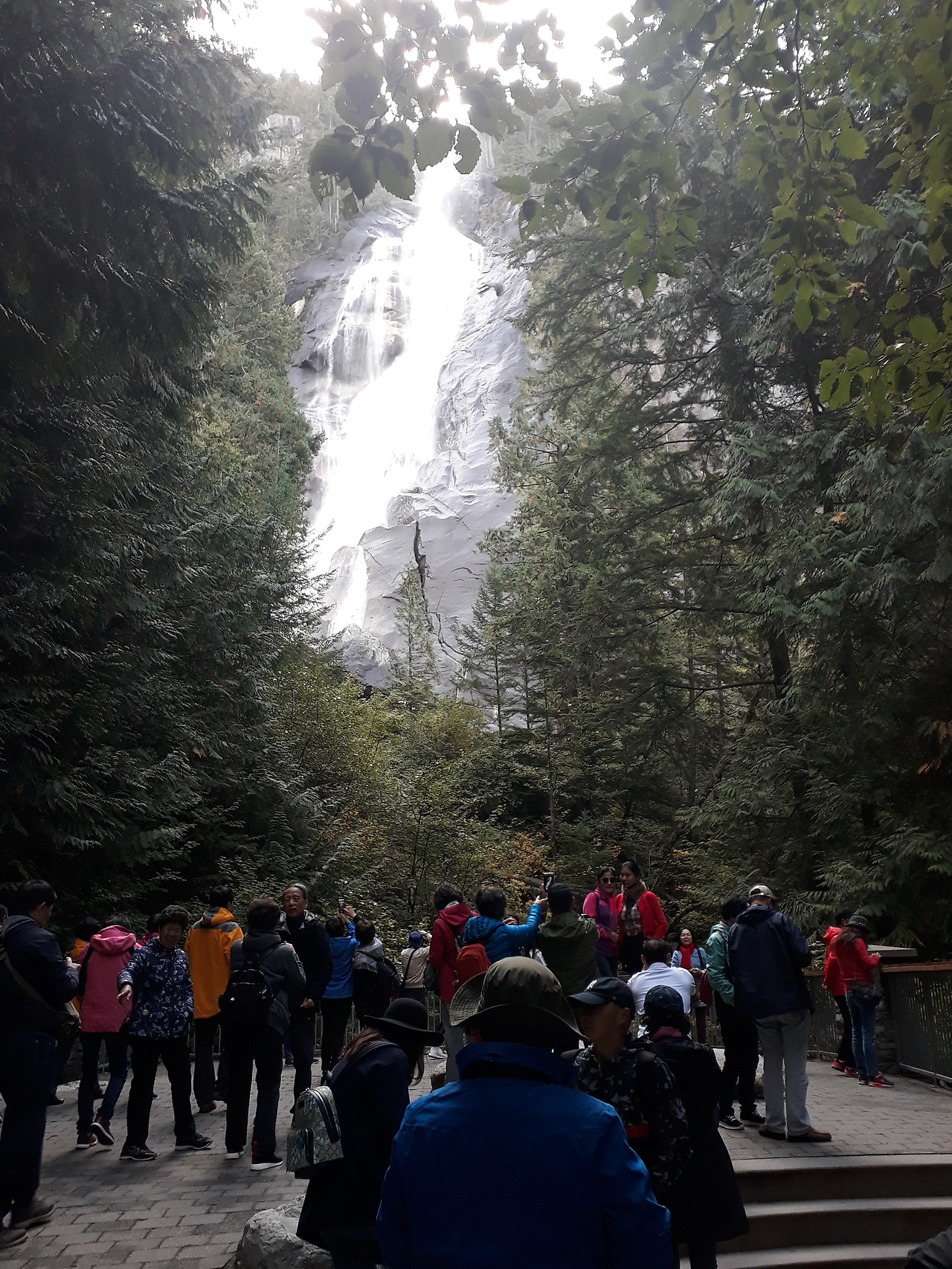 하룻밤 묵은 짐을 차에 옮겨 싣고 캠핑장 건너편에 위치한 샤논 폭포로 마지막 여행지 행로를 바꾸었다. 많은 관광객이 이른 오전부터 인산인해를 이루었다. 밴쿠버 여행지에 포함되어 있는 유명 여행지라고 한다. 샤논 폭포는 캐나다브리티시 콜롬비아주에서 세 번째로 높은 355m의높이를 자랑하는 폭포라고 한다. 눈으로 담기에 너무 경이로웠다. 거대한 물줄기의 조화, 신의 영역과도 같은 자연이 내려 준 위대한 선물이다.