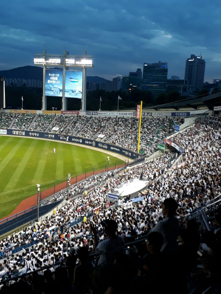 불과 일 년 전의 야구장 모습이다. 경기는 많은 사람이 움집해야 제맛이라 했다. 모처럼 가족과 함께 늦은 오후 잠실벌 응원의 함성을 기억한다. 간절한 소망 하나 담아본다. 서로서로 손잡고 승리를 기원하는 응원의 합성을 다시 듣고 싶어 진다.
