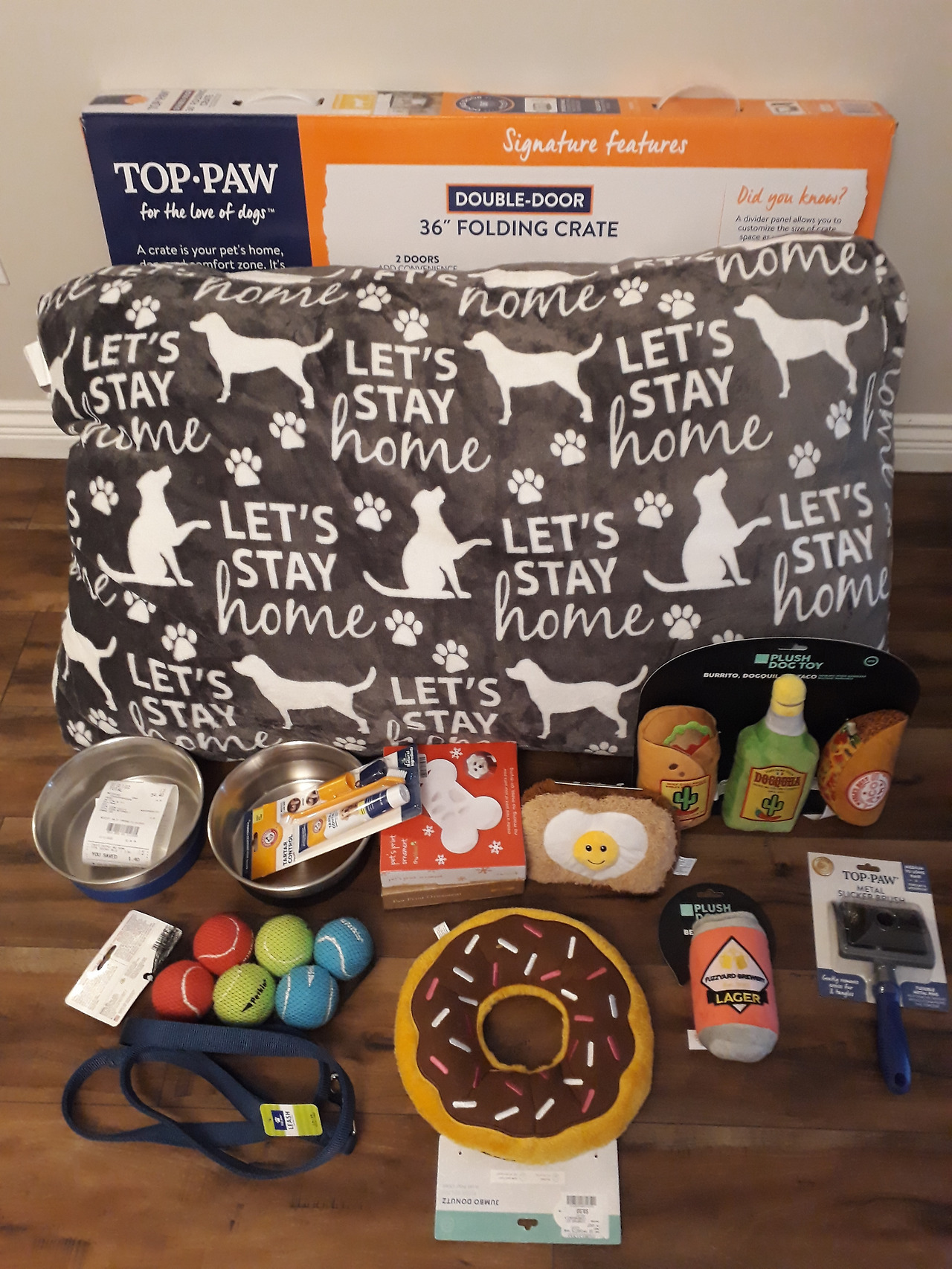 사가지고 온 애완견 용품을 펼쳐 놓고 사진을 찍어 보았다. 아들 방에는 사진 이외에도 애견 메트레스와 또 다른 용품들로 가득하다.