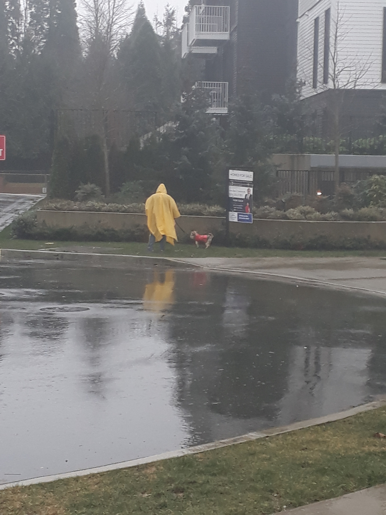 비를 맞아가면서 이런 정성이 어디서 생겨난 것일까. 어제 가족들과 약속한 것 때문에 혹시 의무감은 아닌가도 생각을 해보았다. 그건 아니고 내가 보기에는 자발적인 마음의 시킴이 있었다고 스스로를 위로를 했다. 우리와 마주하는 방향 쪽으로 또 다른 견주와 견공이 나란히 우비를 입고 산책을 하고 있었다. 산책 나온 다른 견주도 처음에는 나와 비슷한 생각을 한 번쯤은 해보지 않았을까도 생각해 보았다. 반려견을 키우는 일은 의무감으로 채워갈 수 있는 상황은 아닌 듯싶다. 사랑이 없다면 아침부터 비를 흠뻑 맞으면서 강아지와의 산책은 기대할 수가 없을 것이다.