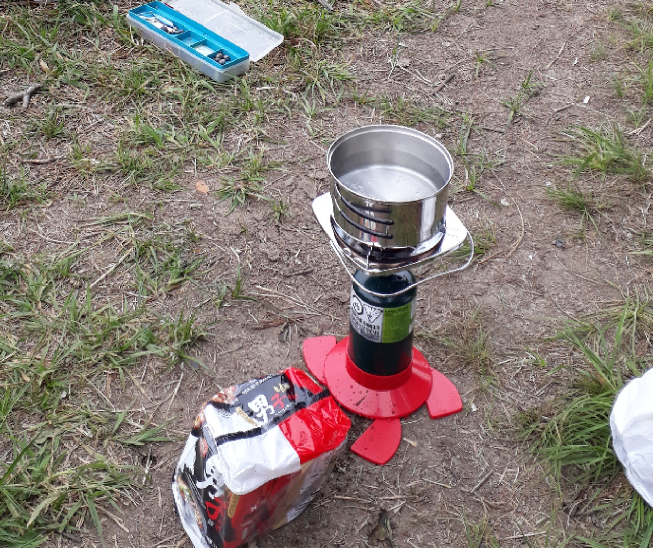 일행이 낚시를 준비하는 동안 라면 끓일 준비를 서둘러 완벽하게 끝냈지만 아쉽게도 버너 점화에 필요한라이터를 미쳐 생각해 내지를 못했다. 일행은 물론 주변 몇몇 분들까지도 비흡연자라 라이터를 가지고 있지 않았다. 라이터 하나를 사러 차를 운전하여 가기엔 사실 편의점과 쉽게 닿을 수 있는 거리가 아니었다.