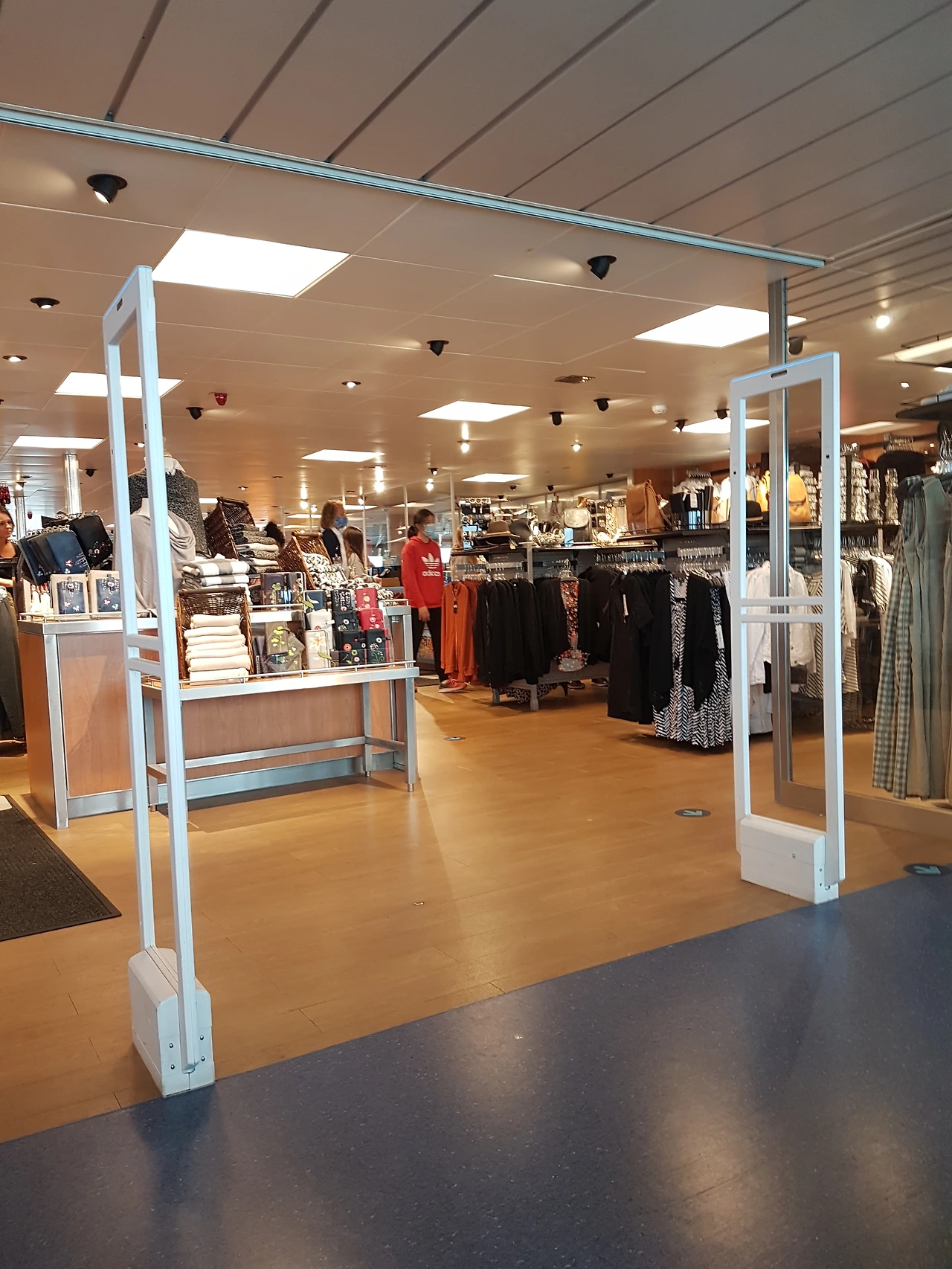 카페테리아에는 많은 사람들이 줄을 서있다. 선상에서 마시는 커피 한잔에는 자유라는 여유의 향기가 묻어 있다. 건너편 부스에는 기념품을 비롯한 각종 의류품이 손님을 유혹한다.