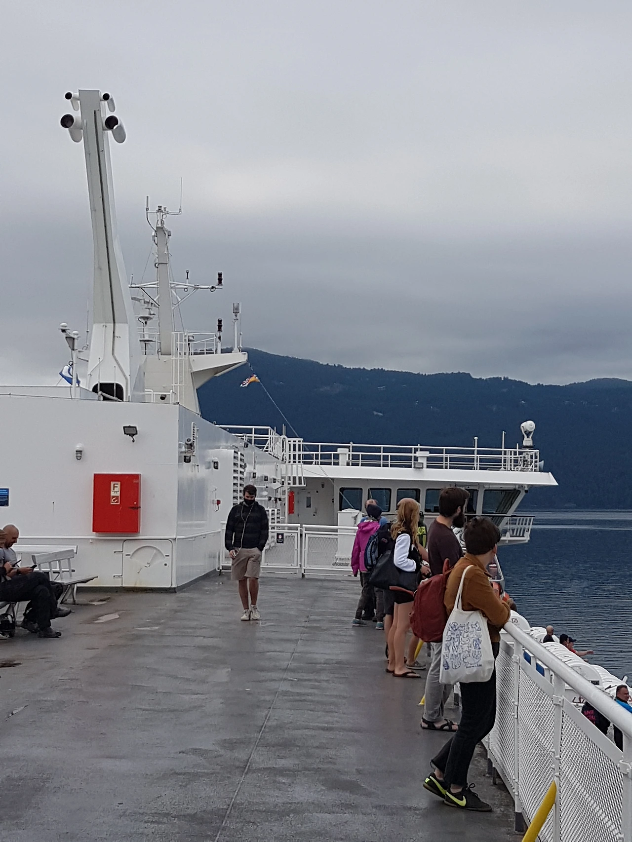 여행객이 승선하기 전에 차량 행렬이 먼저 페리호 화물칸을 향해 이동 하기 시작했다. 차량이 하나둘 자리를 잡아가는 모습이 마치 차곡히 쌓여가는 상자의 움직임을 닮았다. 코로나로 한때는 객실 승선이 금지되어 목적지가 있는 항구 도착전까지는 타고 온 차 안에서 기다려야 했던 엄격한이전의 방역수칙과는 달리백신 접종률 보급이 어느 정도 성과를 보이면서 방역 수칙이 대폭 완화된 분위기이다.승무원들은 차 안에 머무는 것을 삼가고 여객실로 탑승할 것을 권유하고 나섰다.