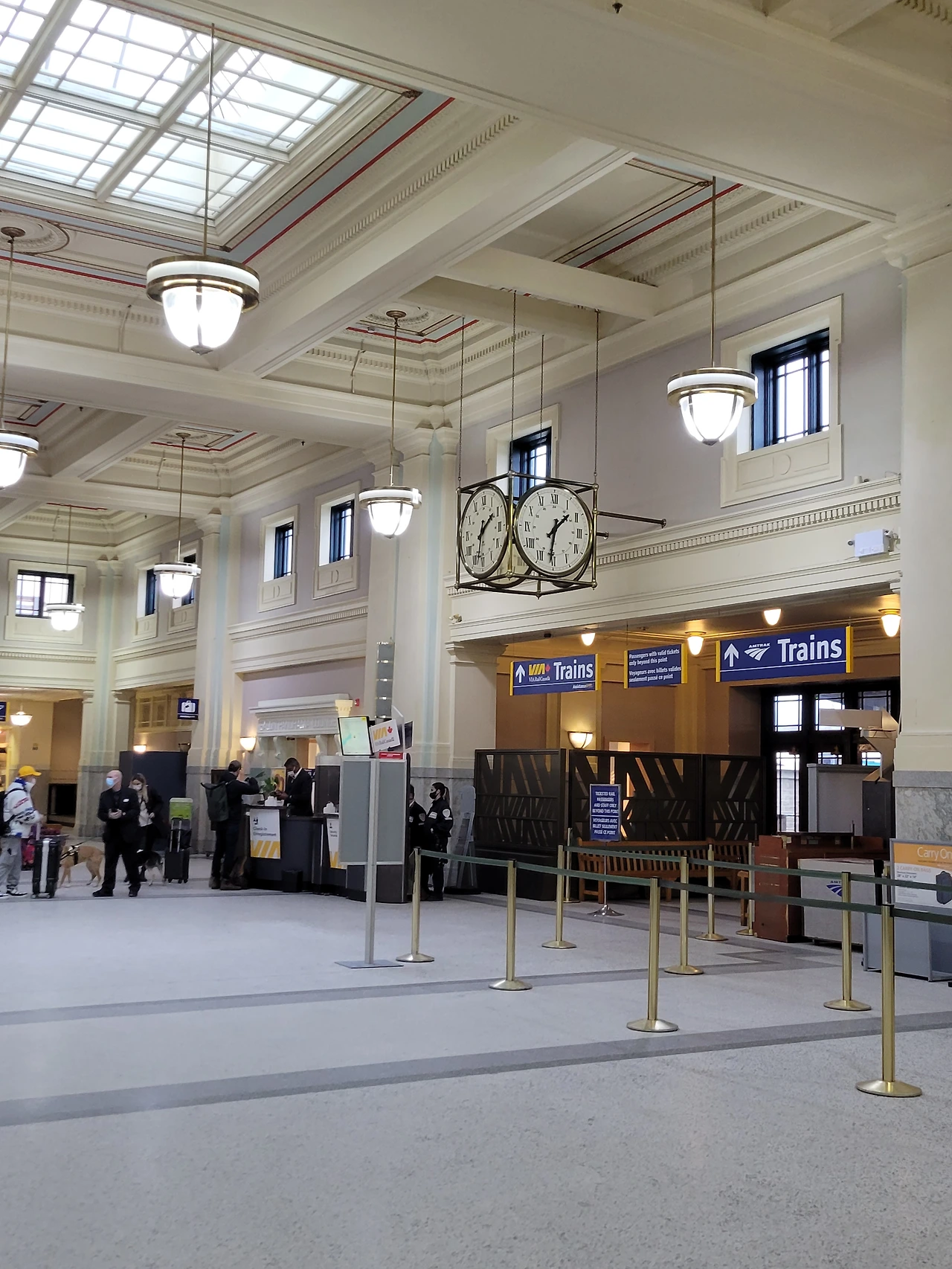 가끔은 차를 타고 밴쿠버 역 주변을 지나쳐 보기는 했지만, 오늘처럼 직접적으로 역 내부를 들어가 보기는 처음이다. 역사 내에는 예상했던 것처럼 한산했다. 예정된 탑승 시간보다 두 시간 정도 빨리 도착한 이유도 물론 있겠지만 코로나로 인해 관광객의 부재가 한산한 이유를 입증해 주었다. 비행기 탑승전 수화물을 수속을 받는다. 열차에도 비행기 탑승 때와 비슷하게 탑승전 별도로 수화물을 붙일 수 있는 접수 창고가 마련되어 있었다.
