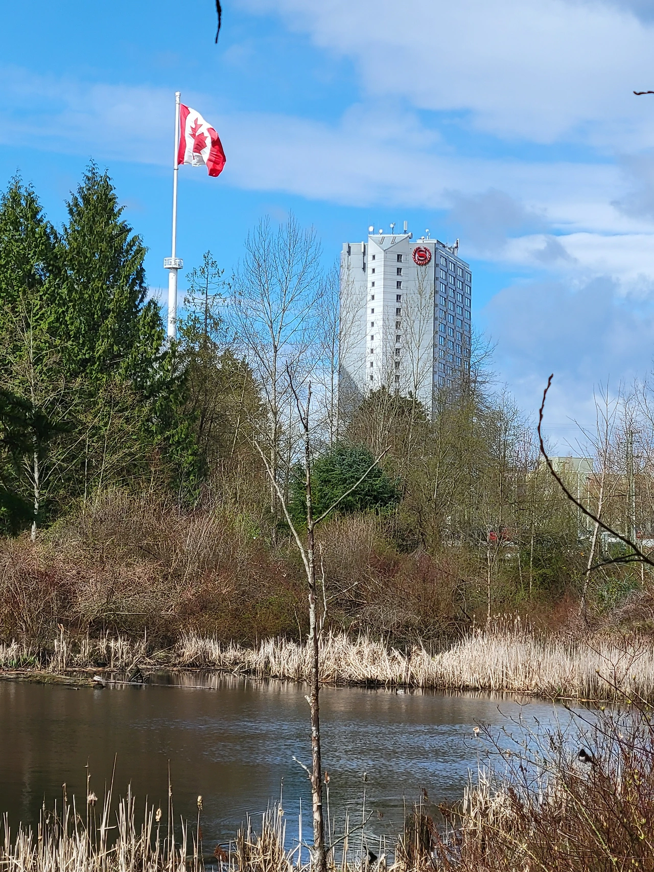 문밖을 나와 도심 방향 쪽으로 시선을 움직이다 보면 캐나다 국기가 게양되어 있는 타워의 모습을 만날 수가 있다. 웅장한 타워는 도심의 랜드마크와 같은 상징적 존재감까지 함께 품고 있다.