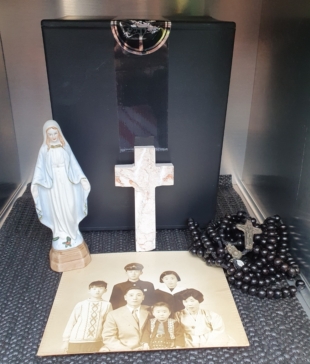 유골함이 생각지도 못했던 종이 상자에 담겨 유가족에게 인도 되었다.유골함이 납골함에 안치되면 전면을 대리석으로 밀봉한다.
