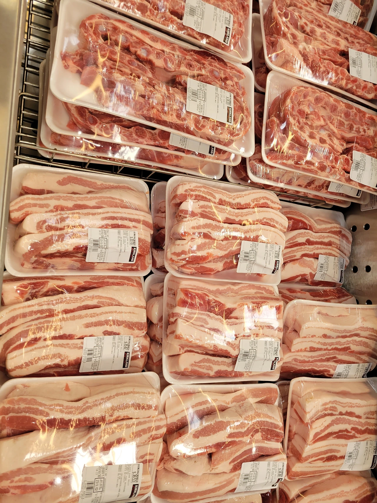 캐나다 코스트코에는 한국형 불고기 이외에도 삼겹살을 판매하고 있다. 판매되는 삼겹살은 삼겹살이기보다는 비계 덩어리에 가깝다. 한국 삼겹살을 흉내 낸 것 같은 느낌과함께 한국인이 생각하는 삼겹살과는 전혀 다른 모습을 하고 있어 눈이 외면해 버린다.