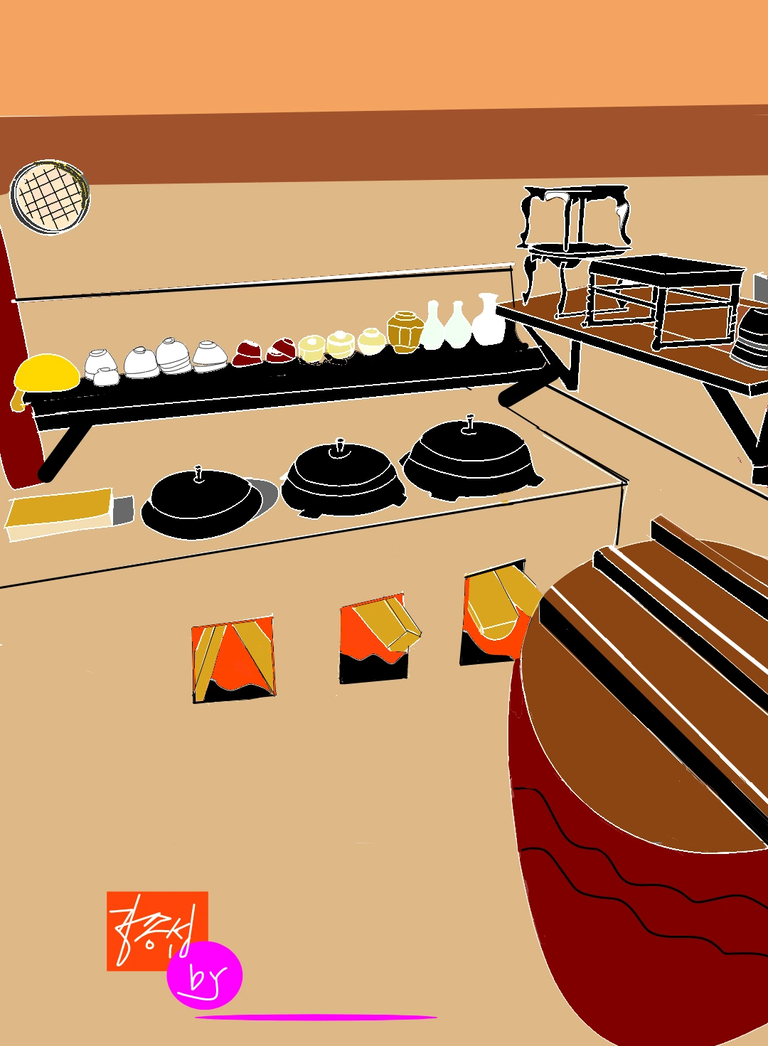 어머니의 부엌은 지금과는 달리 방문을 열면 방문턱 하나를 사이에 두고 바깥쪽으로 부엌이 따로 분리되어 있었다. 부엌은 누구도 침범할 수 없는 어머님만의 유일한 비밀스러운 창고이자 때론 마음과 몸이 함께 쉬어가는 쉼터이기도 했다. 가끔은 부엌에서 어머니의 눈물을 보았다. 어머니의 눈물 사이를 두고 아버지의 얼굴은 일그러져 있었다. 어머니의 부엌은 온갖 애환이 곁들여진 어머니의 심장부와도 같은 곳이기도 하다. 부엌의 모든 구조는 쭈그린 자세를 가지고 일을 해야 가능한 불편한 구조를 가졌다. 부엌에는 두개의 아궁이가 나란히 불의 온기를 기다리고 있다. 아궁이 위에는 무쇠로 만든 크나큰 가마솥이 걸려 있다. 어머니는 수시로 가마솥에 돼지기름을 발라 반들반들 빛나는 솥단지 모습을 만들어 놓으시는 일은 일상과 같았다.