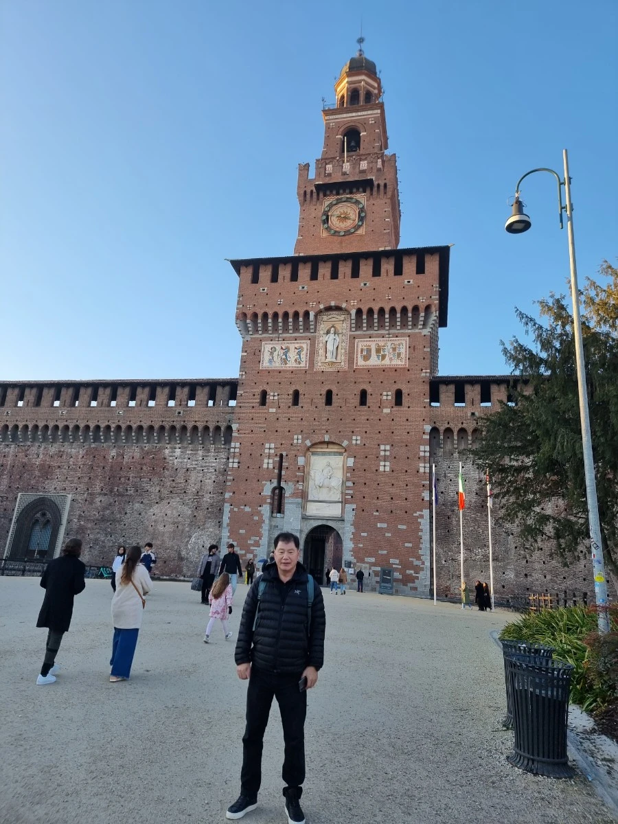 시간상 오늘 밀라노에서의 마지막 일정이 될 스포르체스코성( Castello Sforzesco) 도착했다. 기존의 성당 건축 양식과는 달리 거대한 성이라는 점에 좀 더 관심을 가지고 관람하기 시작했다. 스포르체스코 성은 이탈리아의 밀라노에 있는 성채로, 지금은 도시 박물관과 예술품 전시장으로 쓰이고 있다고 한다.