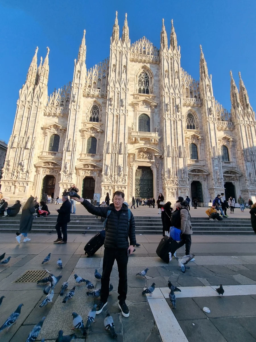 일단, 점심부터 해결해야 할 것 같았다. 다행히 호텔 인근에서 익숙한 KFC를 발견했다. 간단히 햄버거와 커피로 점심을 해결할 요령에 KFC로 들어섰다. 점심시간대라 많은 사람들로 붐벼났다. 간단히 점심을 빠르게 해결하고 전철역으로 향했다. 마침 매장 바로 앞에는 전철역이 있어 시간적 여유를 벌었다. 전철을 타고 밀라노 대 성당에 도착했다. 성당의 웅장함은 베네지아에서 보았던 성당과 다를 것이 웅장했다. 광장에는 수많은 인파와 조각상, 비둘기까지, 여유로운 오후의 시간을 즐기고 있었다.