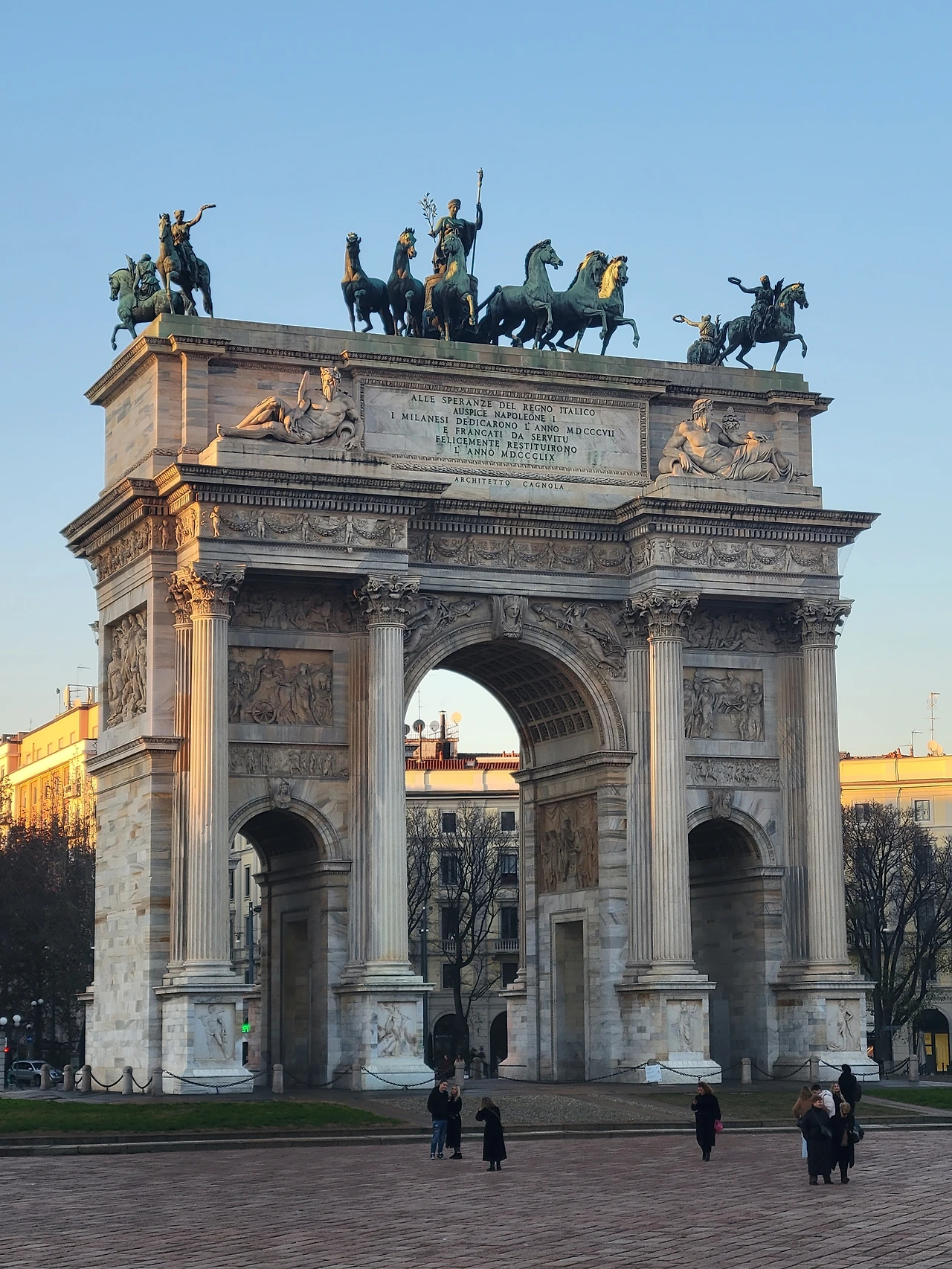 스포르체스코성을 뒤쪽으로 파코 셈피오네 공원이 있다. 마치 파리에 개선문을 연상하는 훌륭한 조형물이다. 거의 개선문과 흡사한 조형물을 보면서 혹시, 원래의 개선문이 파리에 있는 것이 아니라 이탈리아에 있는 이곳은 아니었을까라는 착각이 들정도로 매우 정교한 자태를 드러내고 있었다. 파리 개선문보다는 모양면에서 한층 더 업그레이드된 현대식 조형물의 평가를 받기에 충분하다.