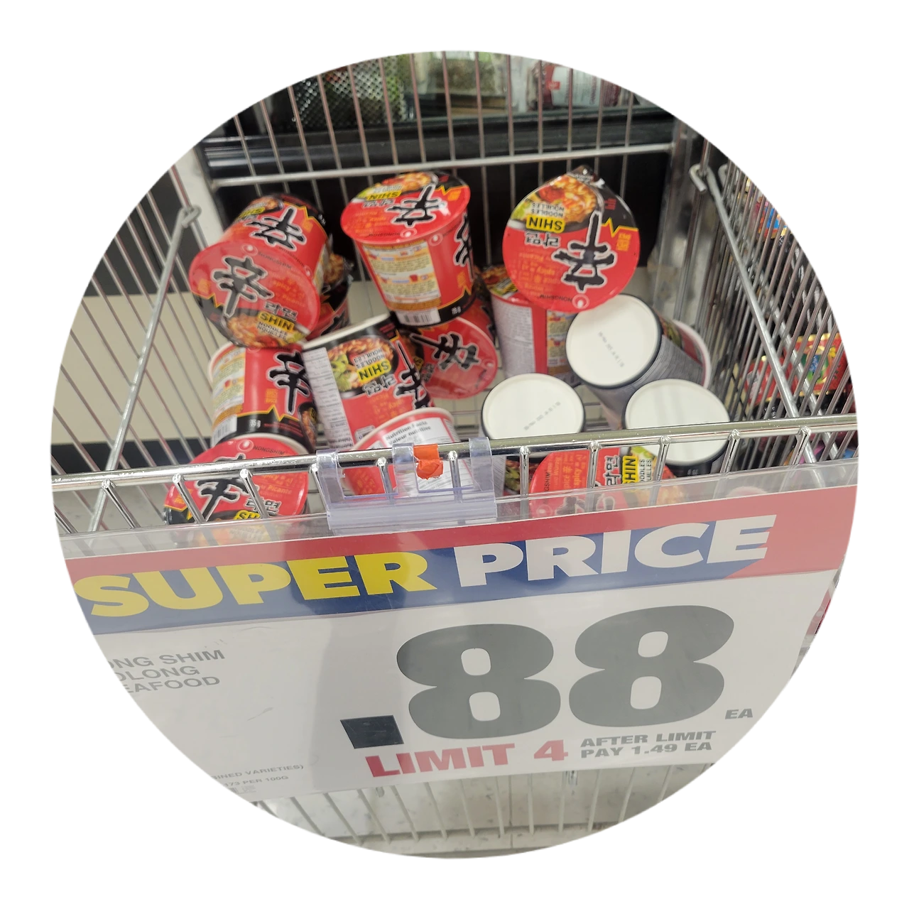 캐나다 대형 마켓 중 하나인 슈퍼스토아에 한국 컵라면이 4개 이상 구매할 수 없는