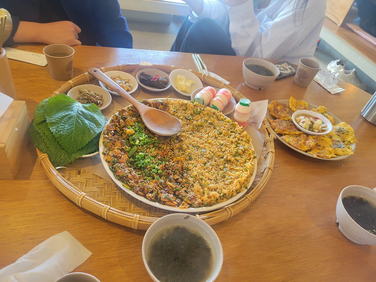 이른 점심을 꼬막 비빔밥으로 소문난 "바다 앞 꼬막집"이라는 식당으로 들어섰다. 오전 11시가 넘은 평일 오전 시간인데도 불구하고 식당 안에는 벌써부터 좌석을 하나둘 채워나가기 시작했다. "꼬막 왕새우 전 한 소쿠리"를 주문했다. 주문한 음식이 소쿠리에 담긴 채 식탁 위에 올라왔다. 각자 빈 접시에 볶음밥과 꼬막을 가져다가 비빈 후 깻잎과 함께 싸서 먹었다. 한결 색다른 꼬막의 맛감을 보탤 수가 있었다. 개인적으로 사실 이곳 꼬막비빔밥이 특별하지 않았다. 다만, 먹는 방법에 조화를 이루어낸 창의적인 성과는 아니었을까,라는 생각을 해보게 된다.