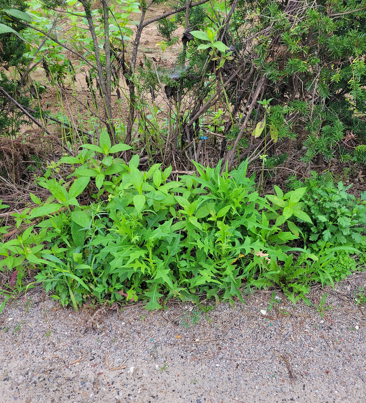 길옆에 풀숲에서 생식하고 있는 씀바귀