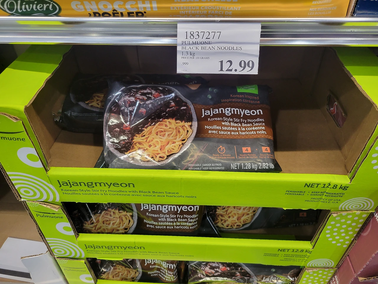 자장면 한 봉지 중량은 1.28kg이다. 보통 1인분 중량의 평균값은 607g에서 650g 사이라고 한다. 한 봉지의 가격은 2인이 먹을 수 있는 양이고, 가격은 12.99불이다. 참고로 한인식당에서 자장면 한 그릇에 13불가량 받고 있다. 코스코트에서판매되는 포장 즉석 자장면은 식당에서 먹을 수 있는 가격대비 반값 수준으로 집에서 손쉽게조리해서 먹을 수 있다는 계산식이 나온다.