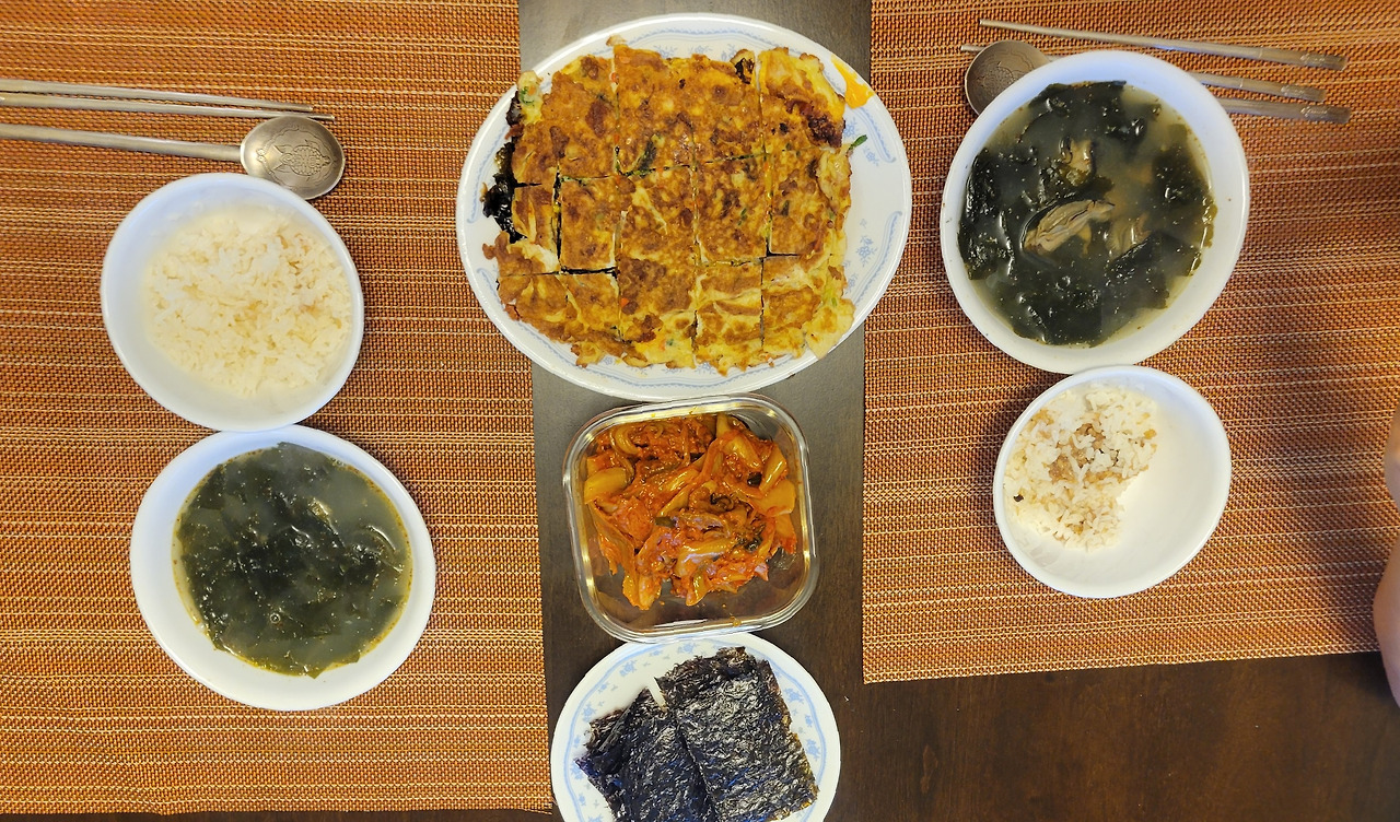 아침 일찍 일어나주방으로 향했다. 제일 먼저 미역국을 준비했다. 미역을 10분 동안 물에 담가 놓았다가 소금물에 깨끗이 닦아낸 후 굴을 집어넣고 굴 미역국을 만들어 놓았다. 사실, 미역국 조리는 간단하지만, 좀 더 맛깔난 미역국을 얻어 내기 위해 유튜브의 힘을 빌렸다.