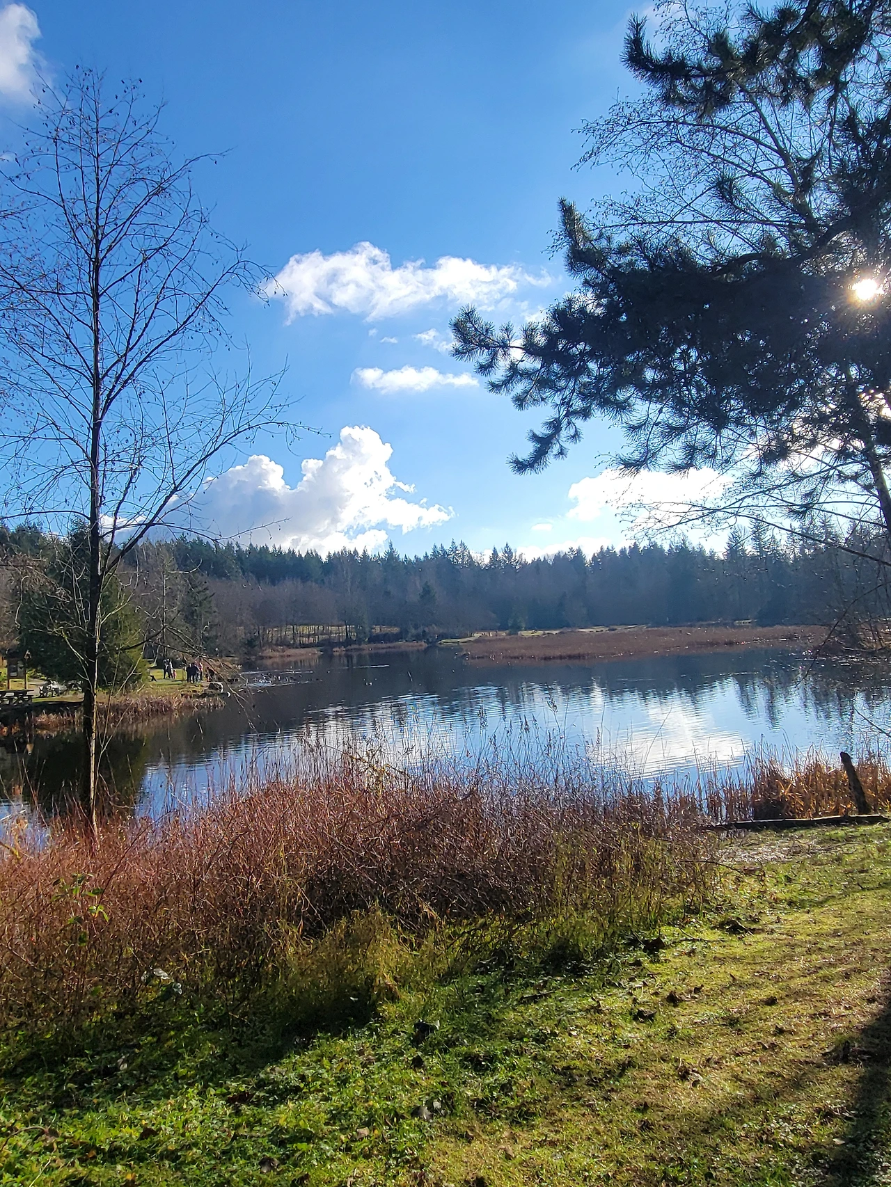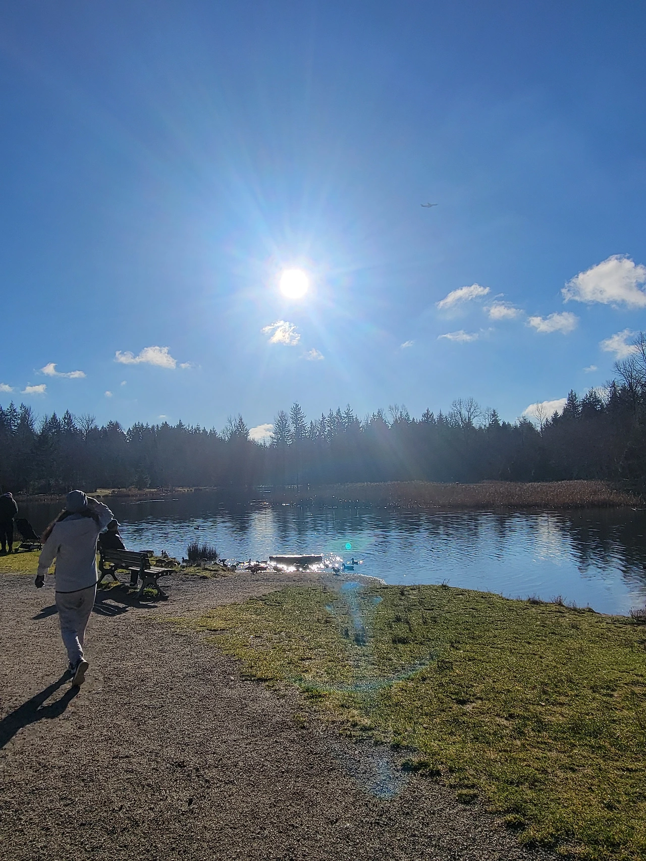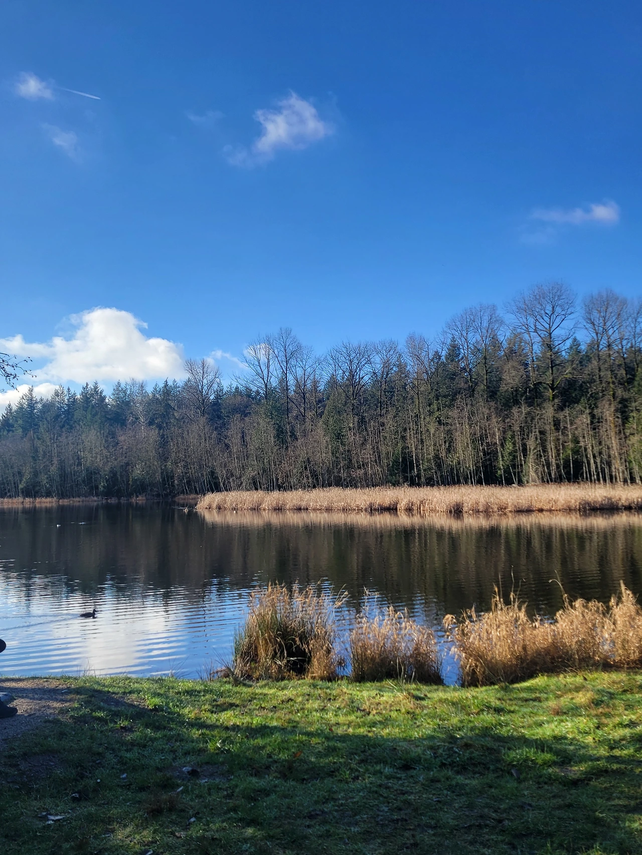 이 공원의 호수는 언제 방문해도 새로운 매력을 느낄 수 있다. 오늘 하늘의 구름은 가슴이 저릴 만큼 아름답다. 이런 하늘을 보고 "보는 것조차 아깝다"는 표현이 어쩌면 지금의 풍경을 두고 하는 말일지도 모른다. 집을 나설 때는 차가운 바람에 다소 쌀쌀한 느낌이었지만, 숲을 지나 하늘과 맞닿는 이곳에 서니 마치 봄날을 맞은 듯한 따스함이 느껴진다.
