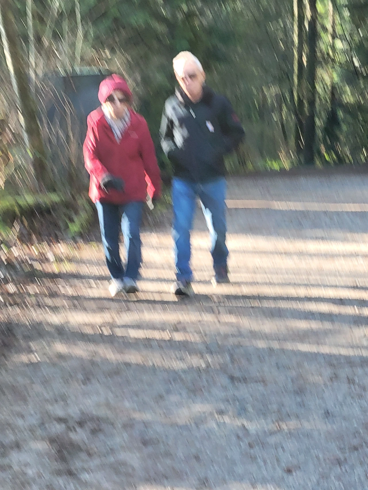 할머니와 할아버지께서도 산책을 나오셨다. 초상권을 생각해 몰래 급히 찍었더니 화면이 흐릿해 인물 사진이 뚜렷하지 않다. 마치 모자이크 처리된 듯한 모습이 되어 다행이라고 생각했다. 노부부의 모습을 보며, 우리 부부도 그때쯤 저 자리에서 길을 걸어가고 있을까?'라는 질문을 스스로에게 던져본다.