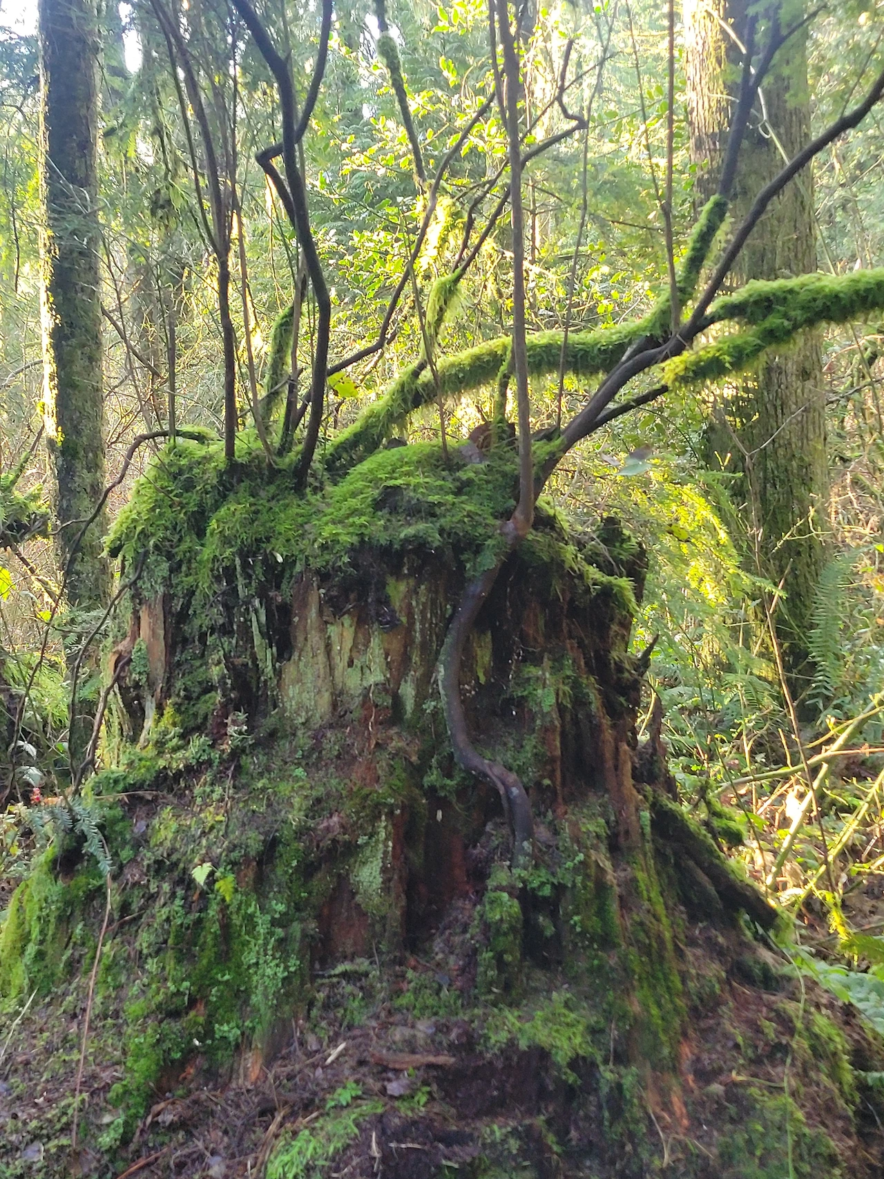 산책로를 따라 걸으면, 곳곳에 나무 무덤들이 눈에 띈다. 오래된 나무들이 무너져 남긴 자리에 새로운 생명력이 뿌리를 내리고 있다. 습기 많은 환경 탓에 이끼가 덮여 있는 곳이 많다. 이 이끼는 나무의 성장을 방해하는 기생층처럼, 마치 자연의 또 다른 힘이기도 하다. 어느 나무든 이끼에 의해 고통받는 모습이 안타깝고, 그 고난 속에서도 살아가려는 나무의 모습은 더욱 가슴에 와닿는다.