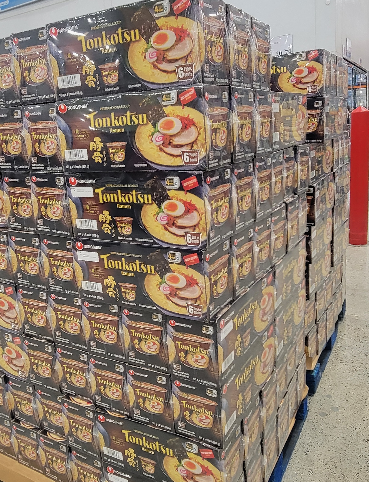 코스트코에서 장을 보던 중, 중앙 통로 팔레트 통째로 옮겨온 라면이 진열되어 있다. 한국 컵라면 정도는 예전부터 있었기에 대수롭지 않게 지나치려 했다. 요즘은 가는 곳마다 한국라면이 열풍이라 한국제품일 수도 있다는 궁금함으로 다가섰다.