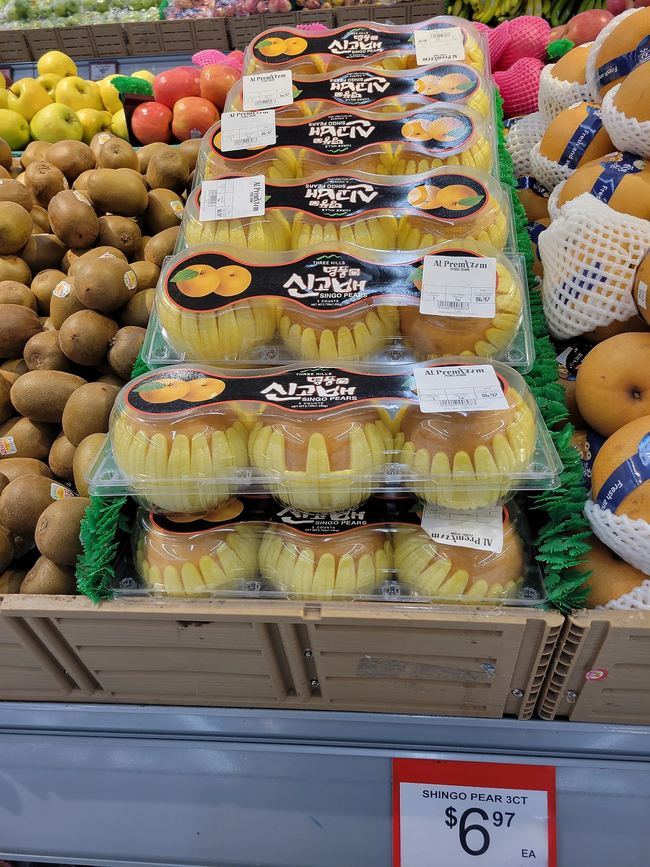 월마트에 들어서자마자 정면으로 과일 코너가 눈에 들어온다. 오늘은 한국어로 신고배라고 표기된 포장지가 먼저 반갑게 맞이한다. 한국산 배는 둥글고 선이 매끄러워 한눈에 알아볼 수 있지만, 캐나다산 배는 대체로 울퉁불퉁한 모양새를 가지고 있다. 익숙한 한국 배를 마트에서 마주할 때마다, 고향의 맛을 그대로 담고 있을 것 같아 자연스레 눈이 간다.
