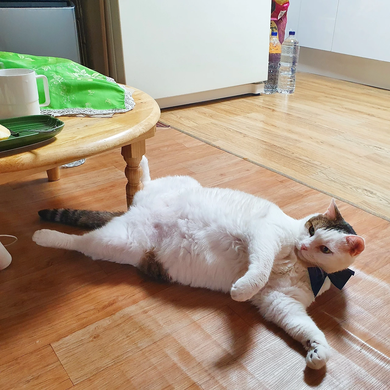 - 나는 이 세상에서 고양이를 보필하도록 태어났다 저 고양이의 안락한 쩍벌을 지켜주기 위해 저 고양이의 뱃살 빠짐을 방지하기 위해