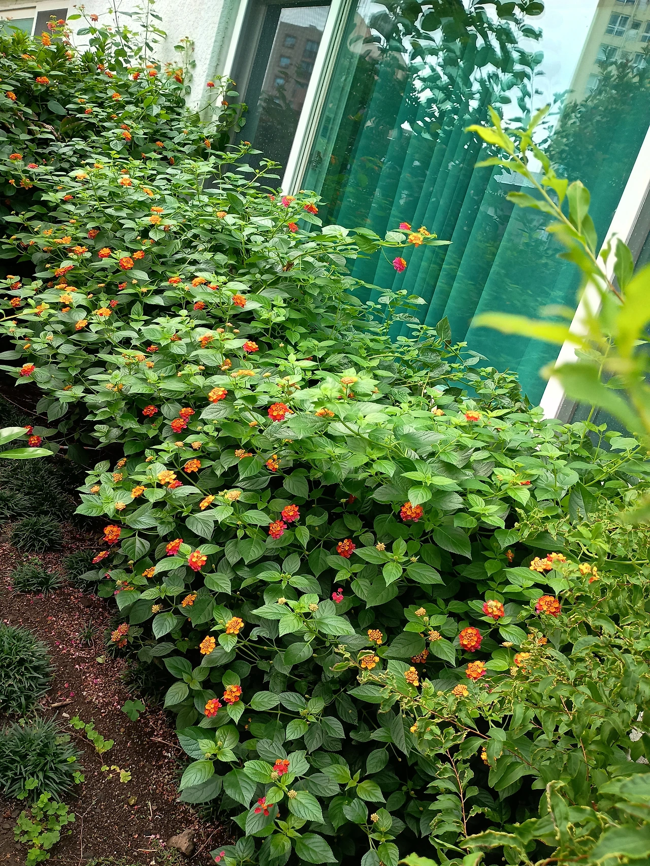 여보! 남편이 안방에서 나를 불렀다. 안방 창문에 있는 난타나가 창문을 가득 매운 것을 보라고 했다. 난타나가 이렇게 울창해서 몇 번을 가지를 쳐 주었지만 여름이 지나고 한 동안 집을 떠나고 나니 더 무성해졌다. 난타나 3개를 사서 심었는데 쑥쑥 하루가 다르게 크더니 2년 만에 숲을 만들었다.