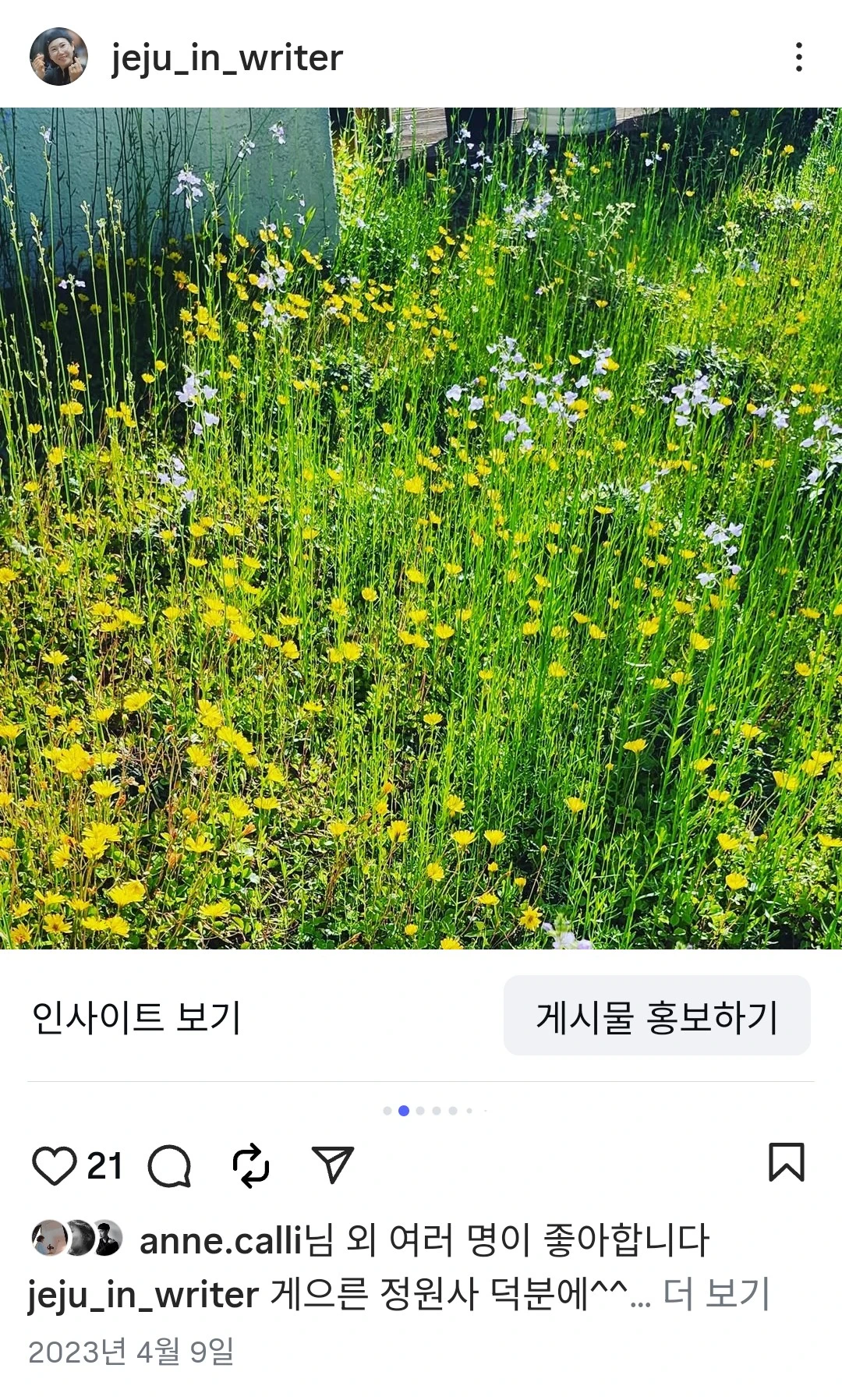 이 아파트에 이사 와서 1년 동안은 풀을 뽑고 꽃도 심고 손발이 바빴다. 주말이면 매주 시댁에서 하룻밤을 자고 집에 돌아왔는데 안방 창문 앞에 제주 야생초와 씀바귀 꽃들이 가득 핀 것을 보고 깜짝 놀랐다. 우리는 안방 창문에는 어떠한 나무도 심지 않았는데 자연스럽게 씨들이 날아와 야생초 꽃밭이 되었다.