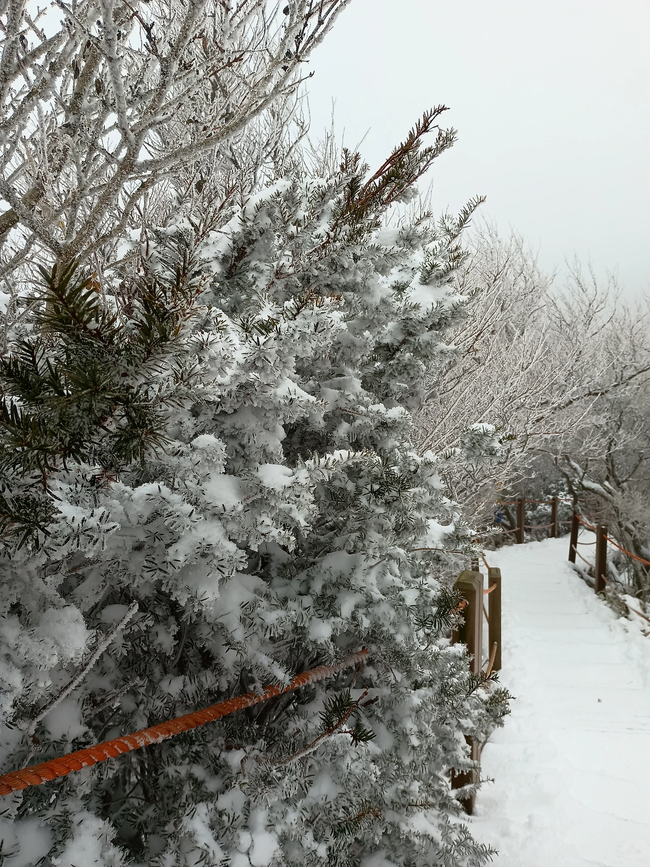 눈 덮인 산이라 아이젠이 없이 올라가는 관광객을 보며 다칠까 봐 불안했다. 그래도 다행히 길을 따라 울타리 줄이 만들어져 있어서 줄을 잡고 엉금엉금 걸어 올라갈 수 있어서 다행이었다. 하지만 올라가는 것보다 내려오는 것이 더 힘들었다. 그리고 내려오는 입구 쪽에는 길을 따라 만든 줄이 없었다. 그래서 미끄러지지 않게 조심조심 내려와야만 했다.