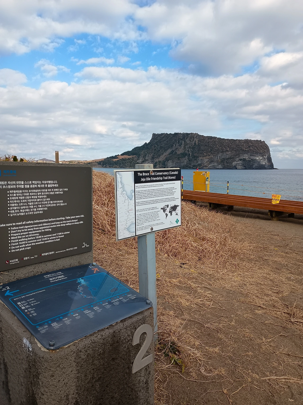 다음에 아들과 친구와 올 때는 승용차를 올레길 시작하는 버스 정류장에 세워두고 올레길을 걷고 그곳에서 버스를 타고 우리 차가 있는 곳으로 다시 와야겠다는 생각을 했다. 겨울이지만 날씨도 어제보다 두 배 포근했고 바람도 안 불어서 가을 날씨처럼 파란 하늘과 바다를 본 행운을 맞보았다.