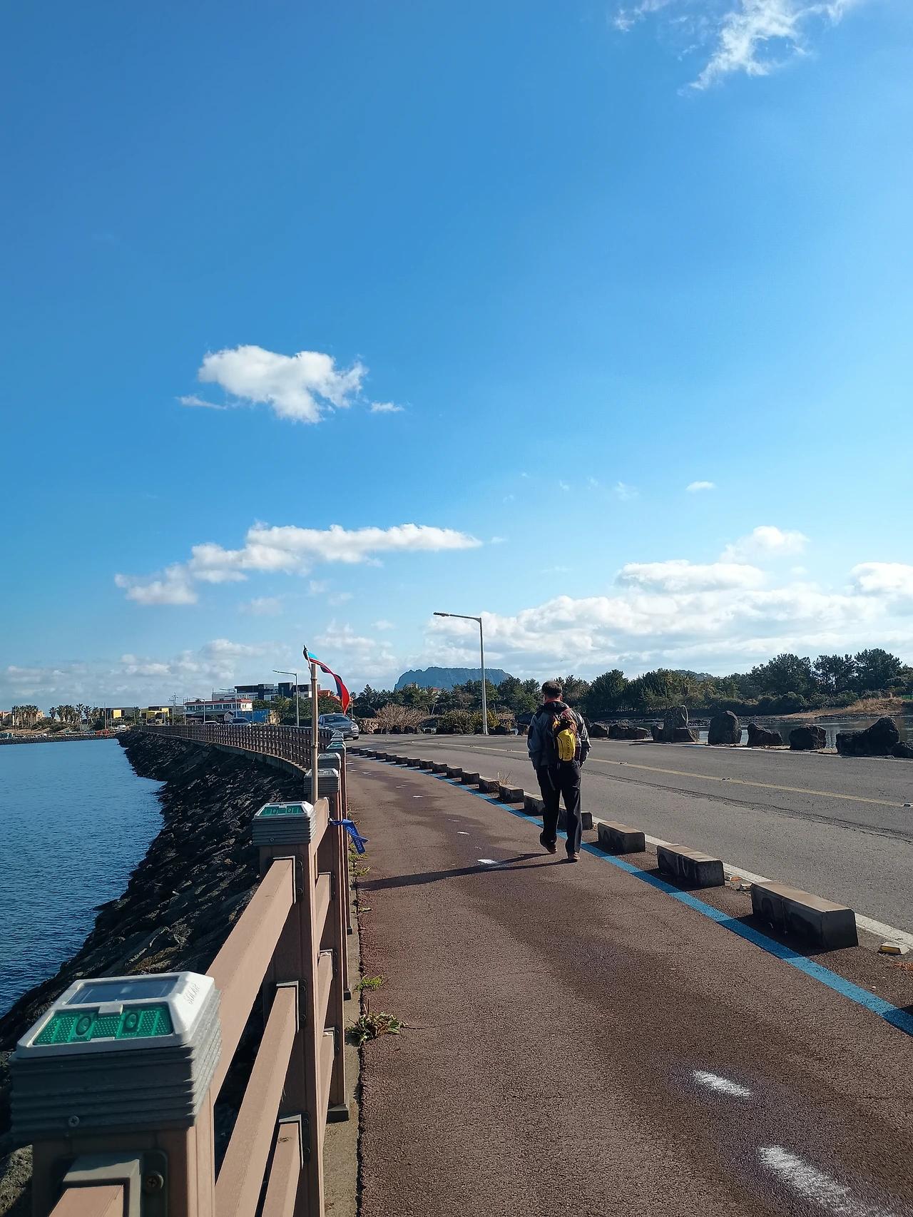 긴 해변을 지나 성산포 항구로 가는 다리를 건너 성산 일출봉 쪽으로 우리는 갔다. 성산 일출봉은 내가 자주 왔었고 올레길을 동네를 지나 광치기 해변으로 나 있었다. 우리는 광치기 해변을 걸으면서 올레길 1코스가 끝났다. 하지만 2코스로 시작되는 광치기 해변은 멀리 보아도 꽤 길어 보였다. 그렇게 광치기 해변은 길게 이어져 있었다.