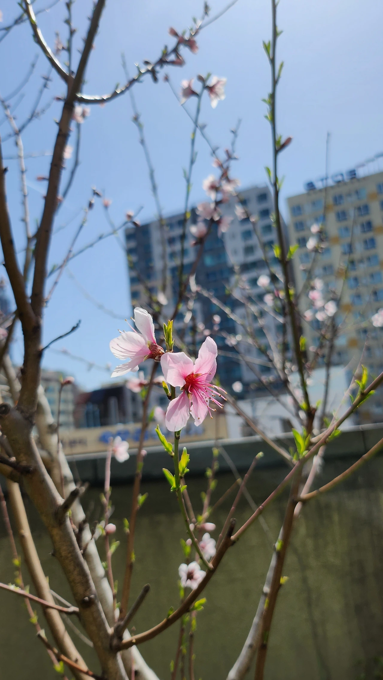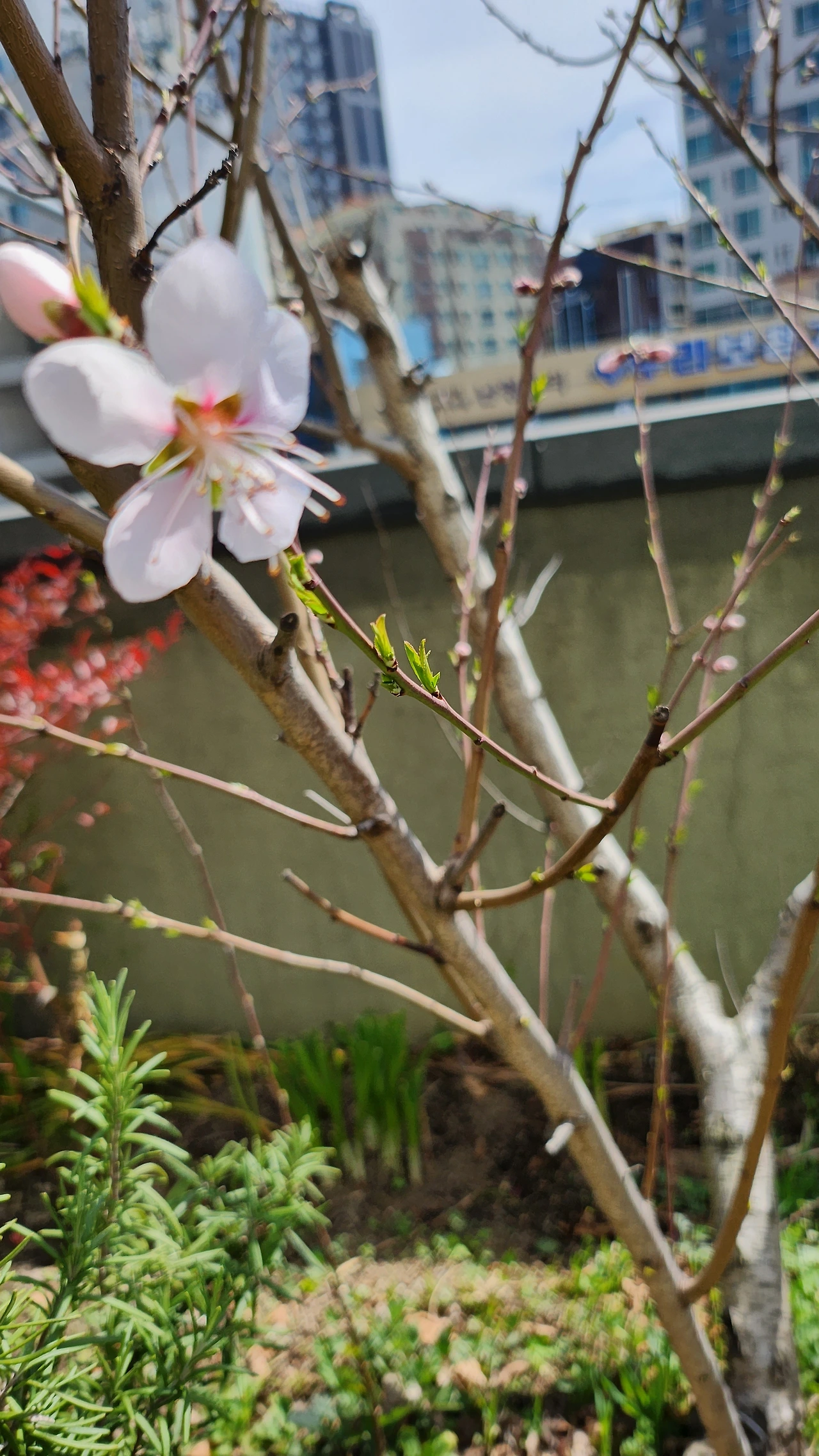 복숭아꽃도 화단에 영양을 주었더니 못 보던 꽃이 피고 진다.