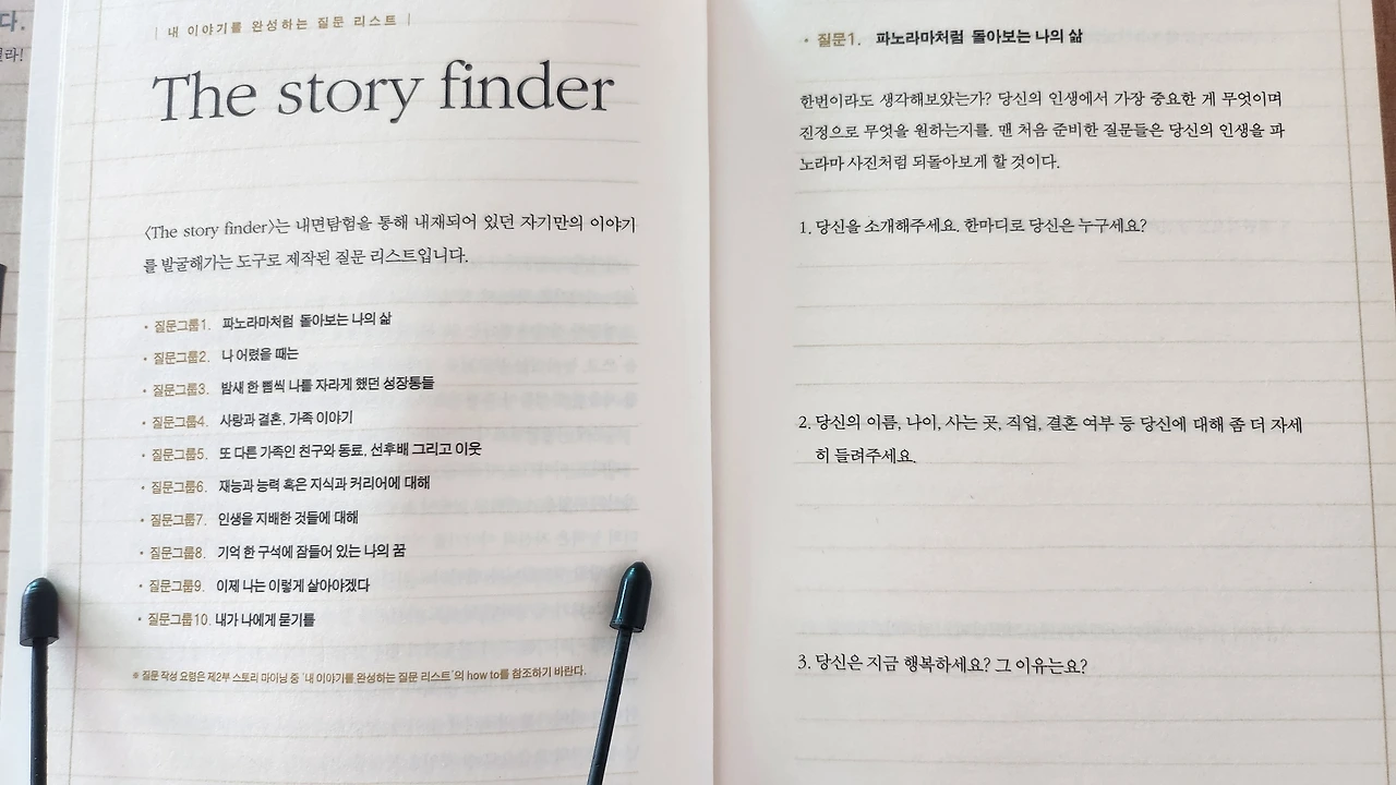 <모닝페이지로 자서전 쓰기>에서는 질문 노트가 있고 친절하게도 예시 글을 읽으면서 글을 쓸 수 있도록 만든 메모 노트가 있다. 이 메모 노트는 352가지 질문 리스트를 1년 동안 쓴다면 자서전이 완성할 수 있다. 이것을 3개월이나 한 달로 프로젝트로 응용해서 글을 써도 좋을 것 같다.