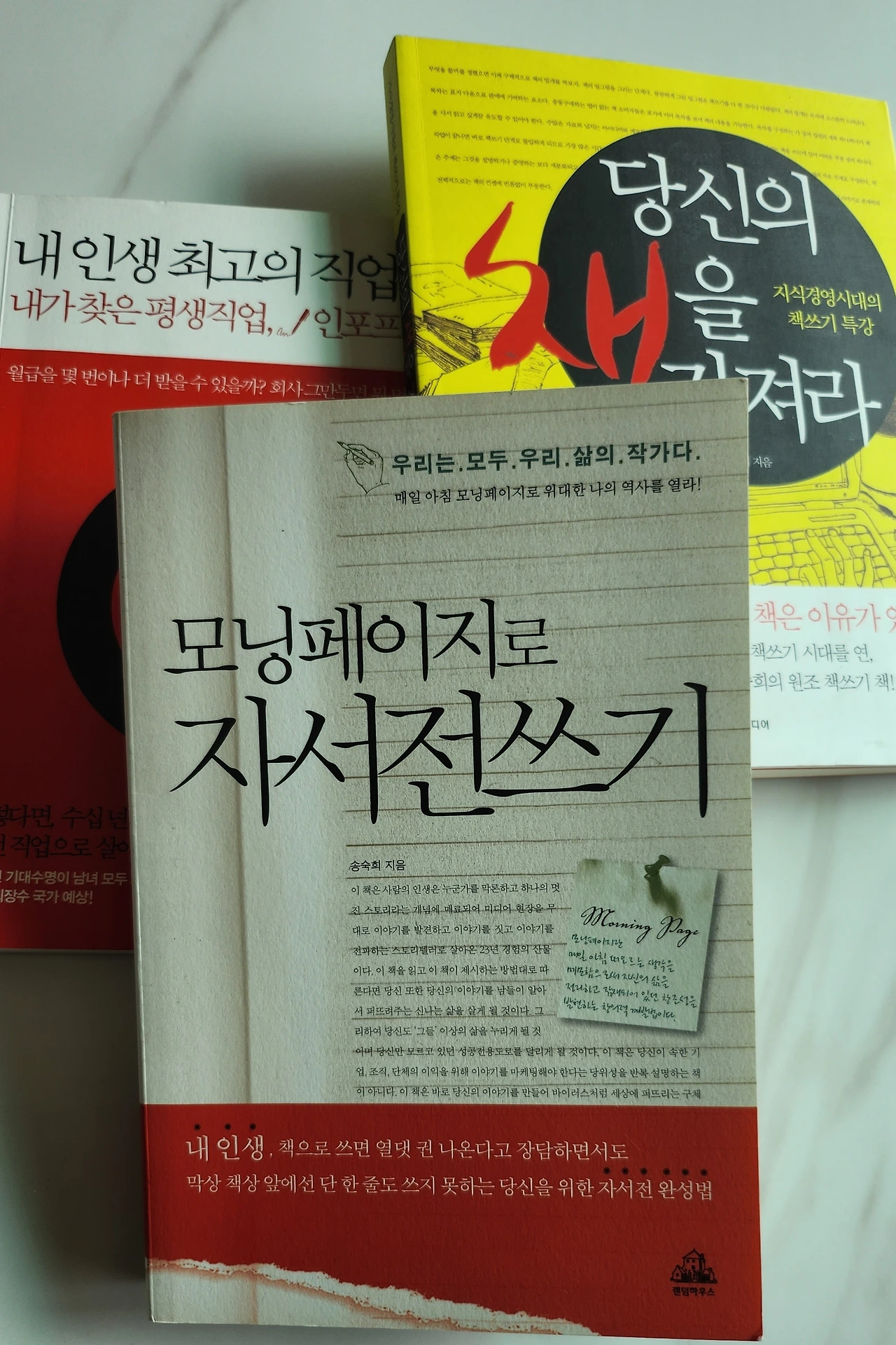 나 또한 책을 쓰면서 많은 힐링이 되어 글이 주는 치유의 힘을 나누고 싶었다. <모닝페이지로 자서전 쓰기>의 저자는 기자로서 많은 사람들을 알고 책뿐만 아니라 시사, 영화, 사회에 다양한 이야깃거리로 소재가 무궁무진했다. 이렇게 좋은 책을 사랑하는 가족에게 선물하고 많은 사람들과 글을 쓰고 싶다는 생각이 들었다. <모닝페이지로 자서전 쓰기>가 내 책은 아니지만 이런 책을 나도 만들어봐야겠다는 생각으로 곱씹어 읽고 싶은 책이다.