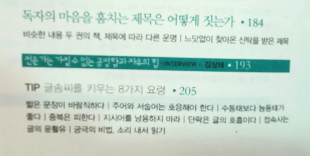 <삶은 어떻게 책이 되는가>에 내가 기획한 것들이 이 책에서 말하고 있는 것에 부합하는지 검토하면서 읽었다. 그리고 지금 내 글을 다듬는데 "글솜씨 키우는 8가지 요령"이 필요할 것 같아 이렇게 올려본다. 첫 번째 책을 쓸 때에도 몇 가지는 들었던 말이었지만 이번에는 8가지를 더 숙지해야겠다는 생각이 들었다.