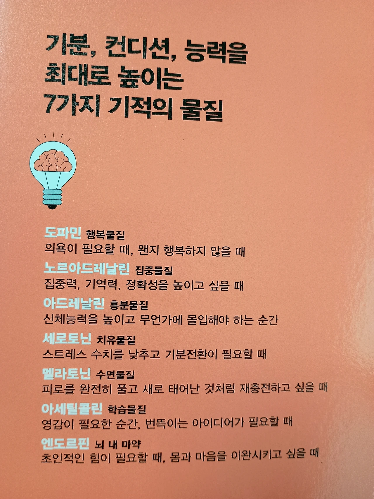 [당신의 뇌는 최적화를 원한다]에서 말하는 7가지 호르몬 중에서 학습 능력을 높이는 아세틸콜린이 인상 깊게 다가왔다.