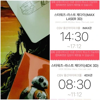 또 최근 저스티스리그와 같은 블록버스터들는 3D 상영이 드물었죠. 스타워즈도 그런데 3D 상영을 선호하는 분이라면 아이맥스 상영관은 3D 상영인 곳도 많으니 그 점도 매력적이죠(스타워즈도 시사회는 2D).