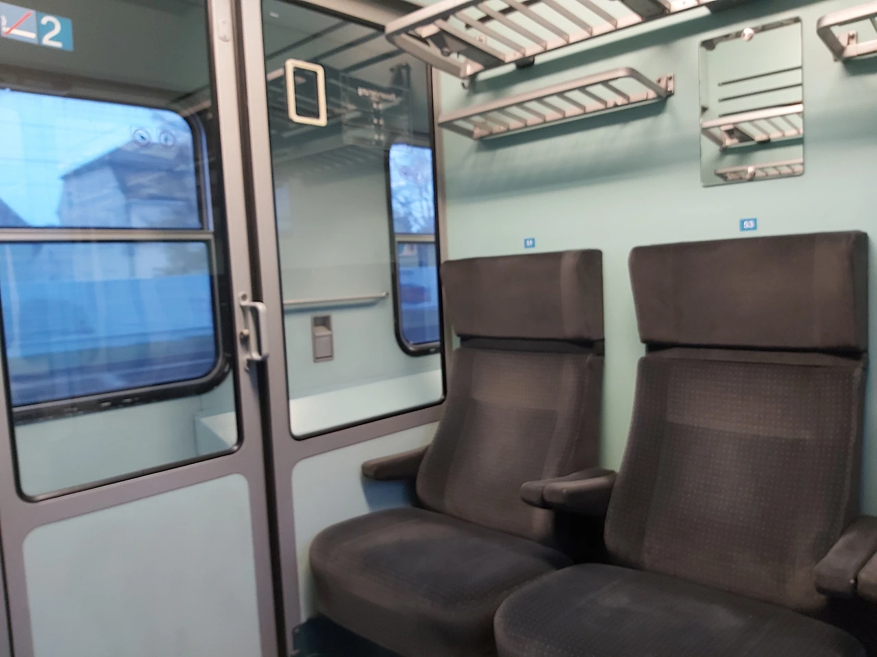 이른 아침이라, 6명 앉는 한 방(?)에 나 혼자 타고 간다.